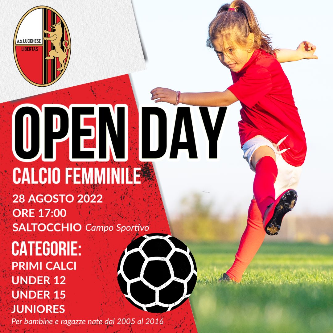 Appuntamento da non perdere domani pomeriggio dalle 17 all’impianto di Saltocchio dove si svolgerà l’Open Day del calcio femminile della Lucchese. Aperto alle categorie primi calci, Under 12, Under 15, Juniores e a tutte le bambine e ragazze nate dal 2005 al 2016 a fare gli onori di casa ci sarà la società, lo staff tecnico e le ragazze della prima squadra.