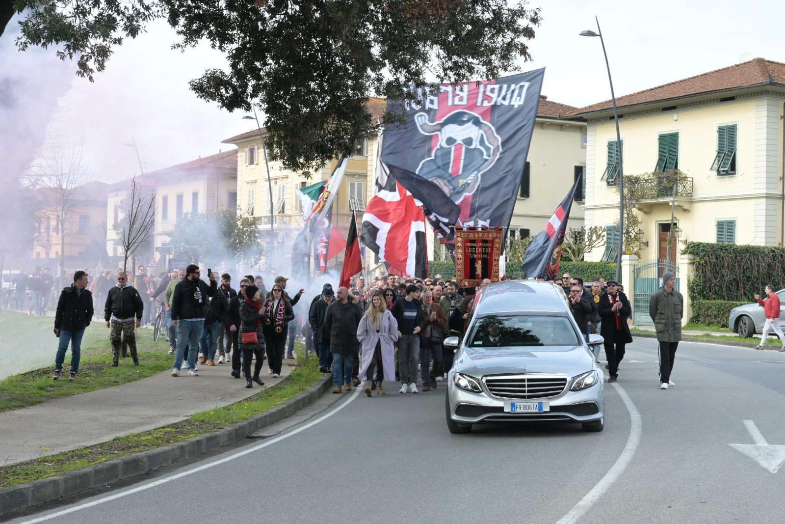 Una cosa così non si era mai vista, almeno a memoria. Un saluto, l'ultimo, a un tifoso della Lucchese e anche a una persona perbene come Beppe Lorenzini. Uno spettacolo, unico nel suo genere, un tributo umano e sportivo di immenso valore e che resterà impresso per tutta la vita a coloro che vi hanno preso parte. Prima la cerimonia funebre nella chiesa di San Leonardo in Borghi in via San Leonardo, nel cuore del centro storico. Una folla strabocchevole, commossa, affettivamente coinvolta e, allo stesso tempo provata per la morte di un amico che era, realmente, amico di tutti. Poi il corteo che si è snodato lungo le antiche vie cittadine per raggiungere, tra bandiere al vento e cori, lo stadio Porta Elisa, quello vero, quello di un tempo che fu, quello che, speriamo più tardi che mai, vogliono ristrutturare e stravolgere. Un fiume di gente nel cuore di Lucca per accompagnare un supertifoso rossonero nel suo ultimo viaggio alla luce del sole.