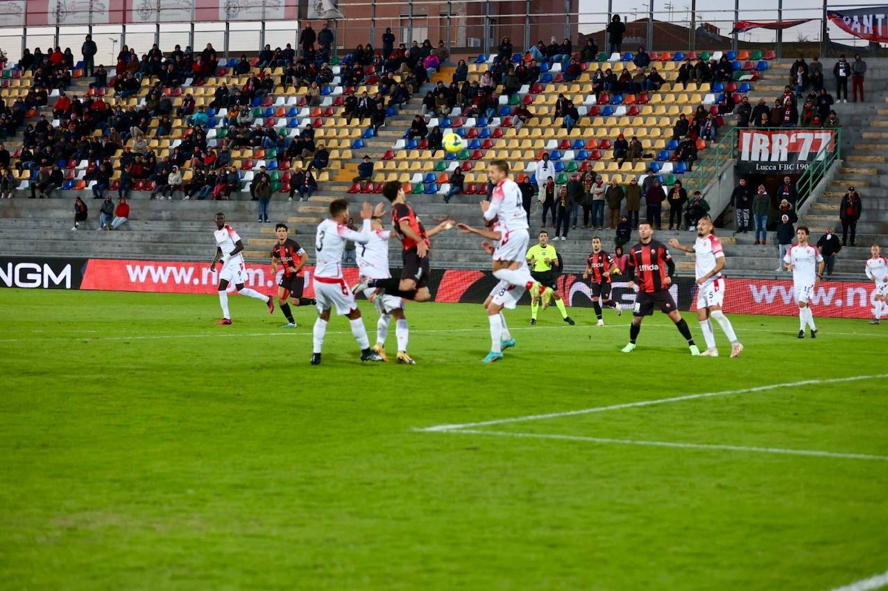 La Vis Paesaro parte molto aggressiva e al 17' passa in vantaggio con Sylla, che trasforma un calcio di rigore conquistato per essere trattenuto con la maglia da Benassai. La formazione ospite gioca molto meglio e al 22' raddoppia con Sylla, che di testa batte per la seconda volta Chiorra. La Lucchese non riesce a reagire e l'unica occasione che gli uomini de presidente Bulgarella arriva allo scadere con Quirini, che di testa manda clamorosamente alto. I rossoneri non riescono ad entrare mai in partita e soffrono due giocatori come Sylla e Pucciarelli, che davanti a loro hanno praterie.