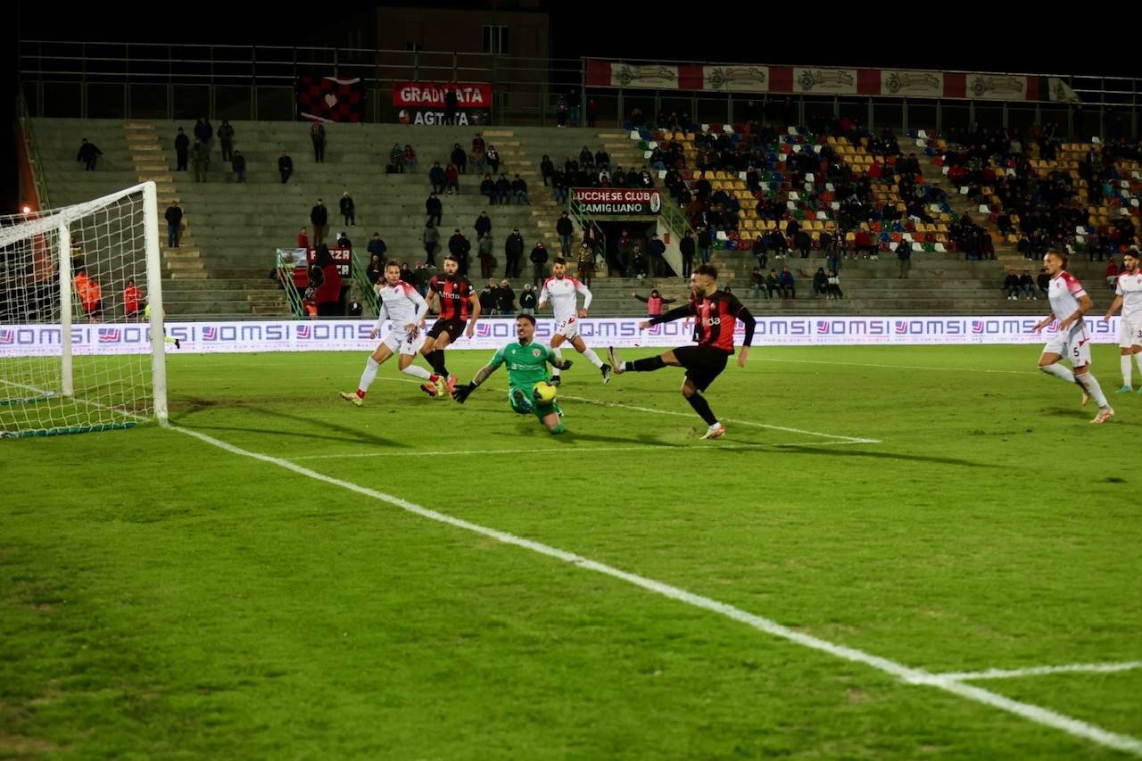Non riesce Magnaghi ad essere pericoloso, se non con quel colpo di testa al 5', che scheggia la traversa il centravanti rossonero viene imbrigliato bene alla difesa marchigiana, come il resto della squadra che non ha idee e rimedia un secco 2 a 0 nel primo tempo, adesso si fa dura, per gli uomini di Gorgone cercare di pareggiare un match tutto in salita. La Lucchese riesce a segnare subito nel secondo tempo al 10' approfittando di un errore difensivo tra Polverino e Ceccacci che non si capiscono e Rizzo Pinna ne approfitta. A questo punto la formazione di casa ci crede e prova a cercare il pareggio e per poco non ci va vicina con Magnaghi, ma la palla viene mandata in angolo. La Vis Pesaro sembra un po' accusare il buon primo tempo e cerca di chiudersi come meglio può. Ma la Lucchese non approfitta e nonostante le varie occasioni avute con Russo, non riescono a pareggiare. E a fine partita inizia la contestazione sotto la Curva Ovest.