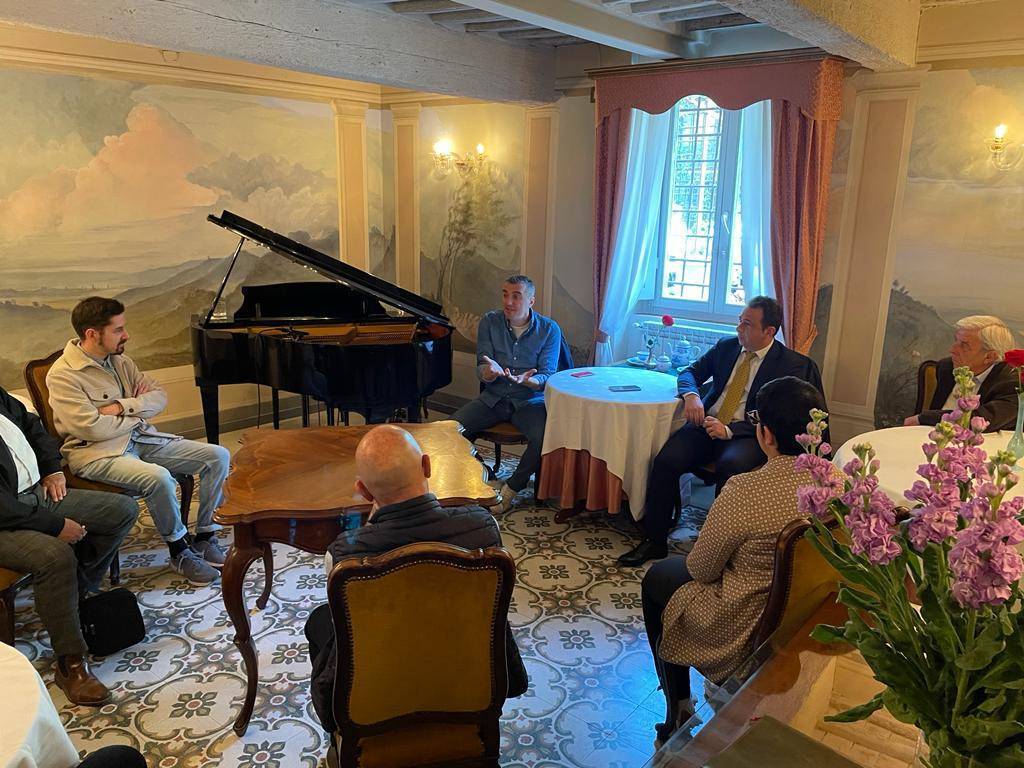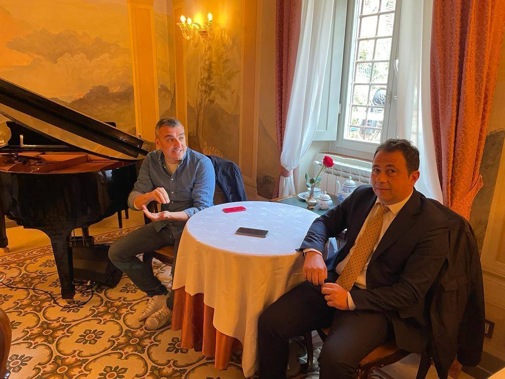 Giuseppe Mangiarano, dirigente calcistico con una esperienza di oltre 25 anni, e Ray Lo Faso, uomo di estrema fiducia di Bulgarella che lo ha voluto con sé non solo nel gruppo economico che possiede, ma anche in questa avventura calcistica toscana. Arrivati, giustificati, con una ventina di minuti di ritardo all'appuntamento, si sono seduti all'interno di una delle sale del magnifico locale che, un tempo, era la sede di Foto Alcide, un fotografo che ha immortalato la storia della Lucchese Libertas 1905.