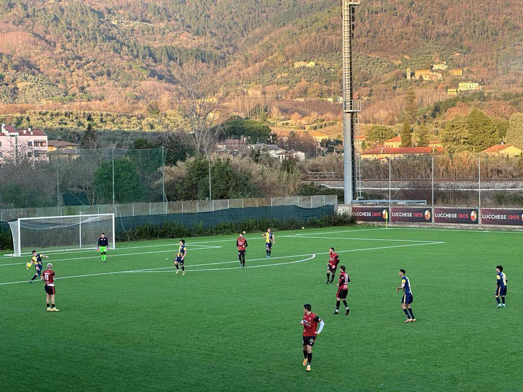 La Lucchese chiude il primo tempo in vantaggio di due reti con un goal realizzato al decimo minuto da Russo. Poi raddoppia al 25' con Riad, al 36' sempre con Riad, sfiora una traversa che le permetterebbe di andare sul 3-0, ma niente da fare