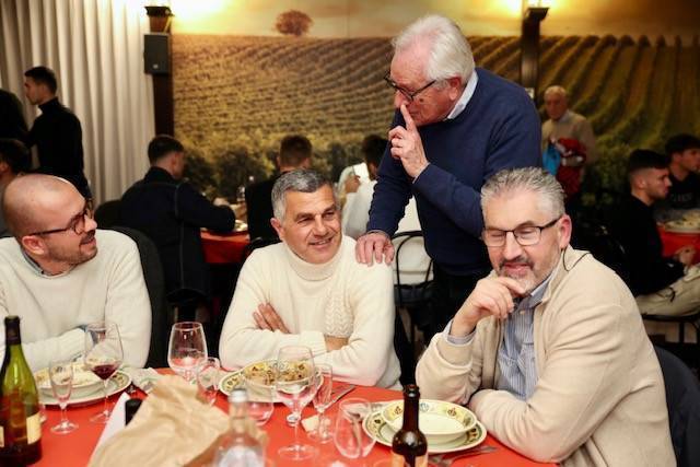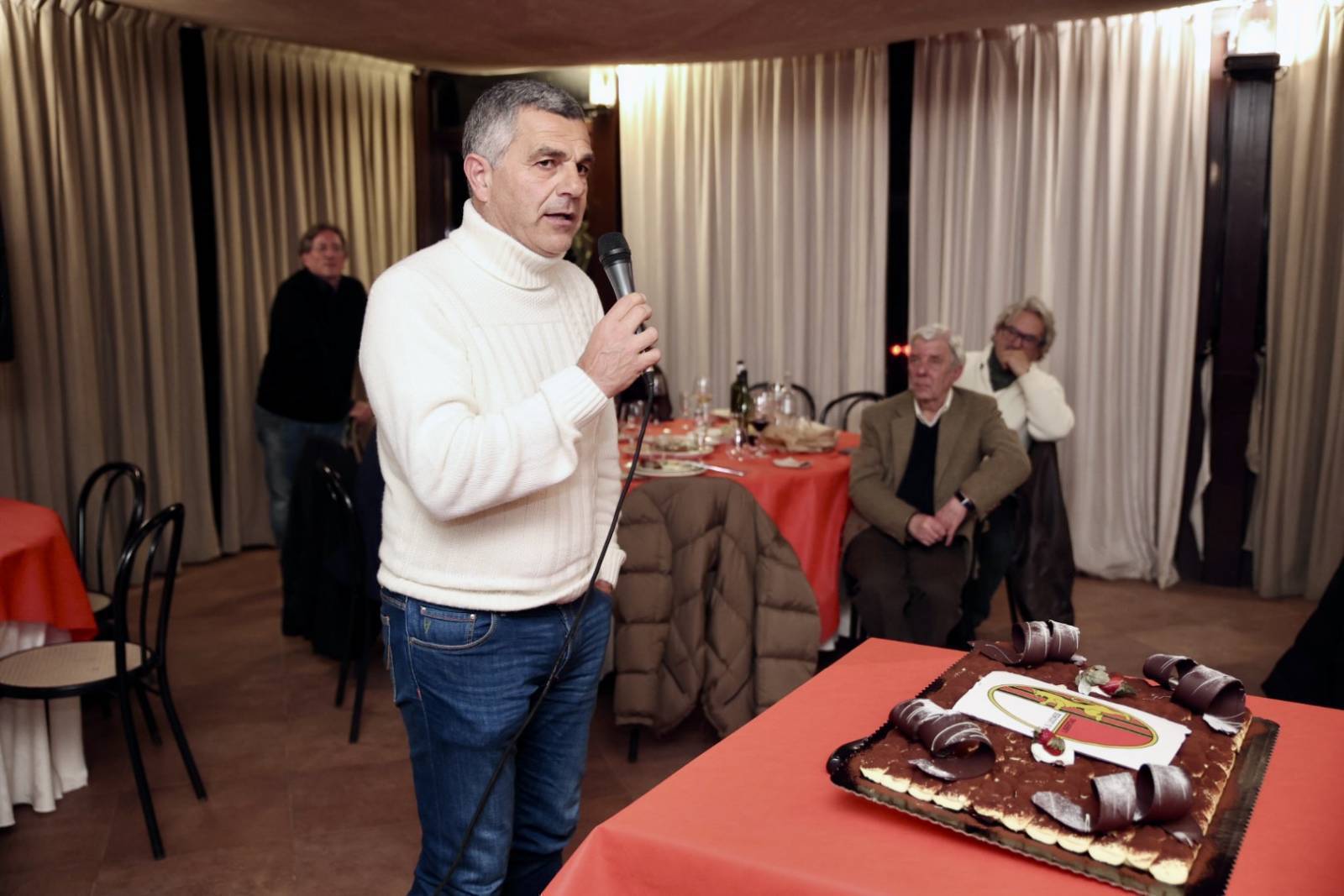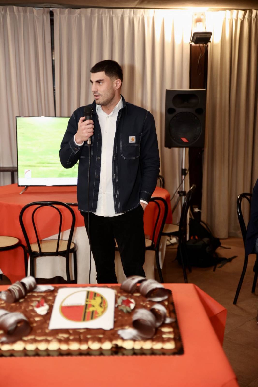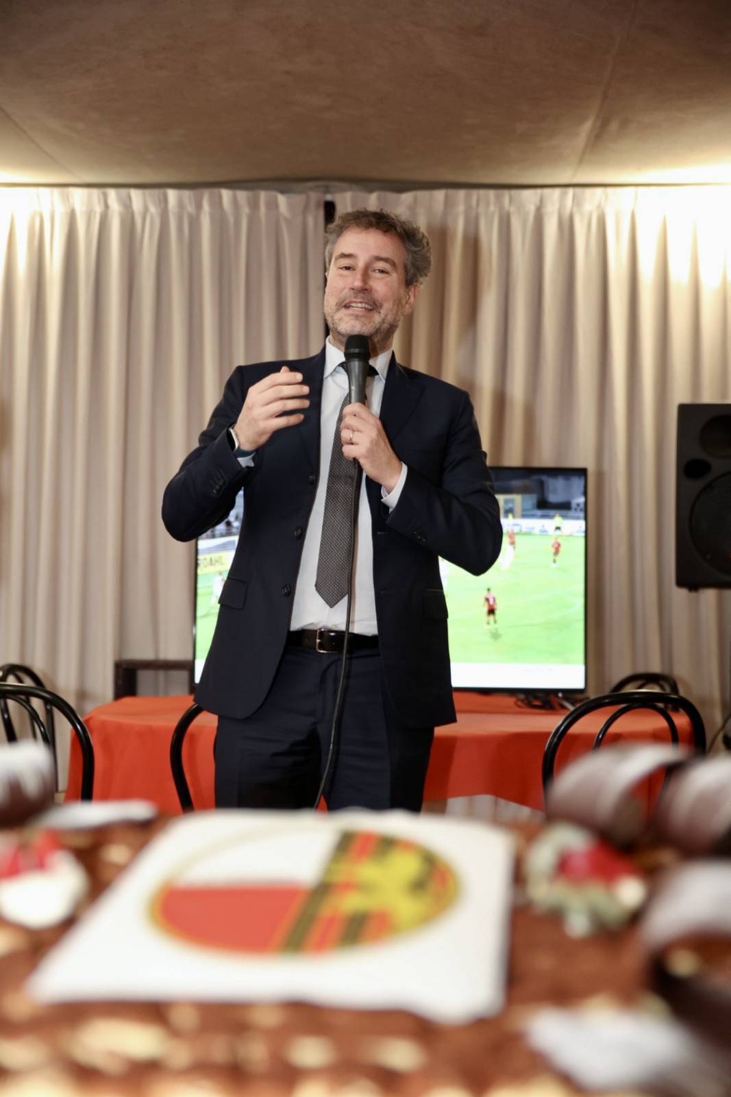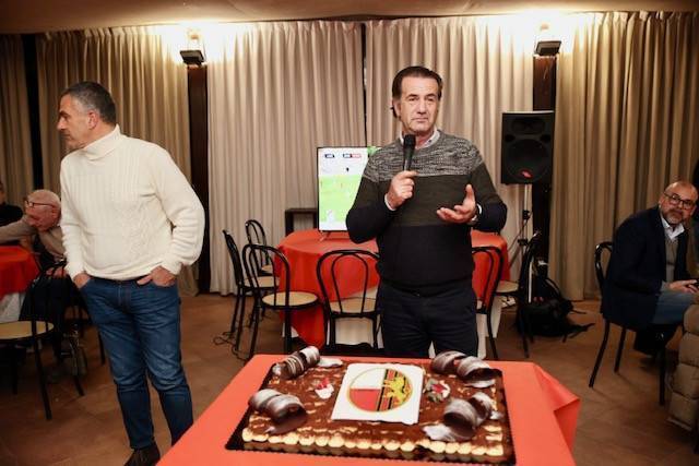 E' stato Emiliano Pellegrini lo speaker d'eccezione, ironico come sempre, mai goffo, costantemente sul pezzo come, ormai, fa da decenni suscitando sempre il sorriso e il buonumore. Di fronte ad una mega-torta dai colori rossoneri, ha introdotto, uno ad uno, i protagonisti dell'evento. E' stato il presidente Vichi il primo a prendere la parola, brevissimo, oltre agli auguri per le feste imminenti, i complimenti ad una squadra fatta, ha detto, ancor più che di atleti, di uomini. Dopo di lui ha preso la parola mister Maraia, magione bianco a collo alto, salutato con qualche coro dal fondo della sala dove stavano i suoi ragazzi. Il tecnico rossonero ha tracciato un bilancio sintetico della stagione fin qui percorsa, facendo notare che al di là di qualche scivolone, la squadra ha dato molto dimostrando di possedere volontà e carattere. Certo - ha aggiunto - in qualche circostanza abbiamo peccato di ingenuità e perso punti per strada, ma ci sta, sono cose che possono capitare. Adesso mancano ancora molte partite, siamo a metà campionato, dobbiamo fare e dare il massimo per raggiungere il nostro obiettivo.