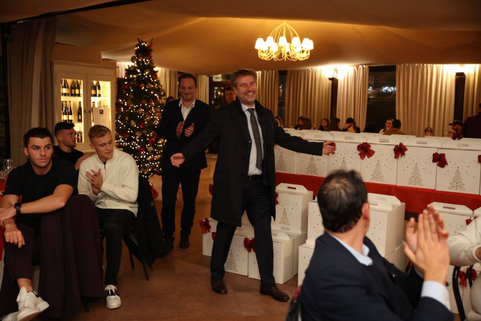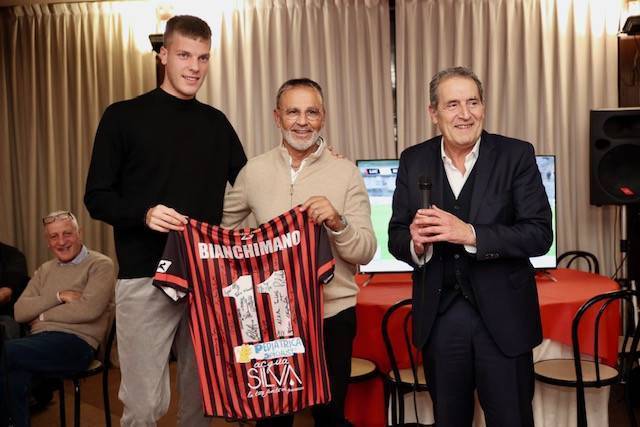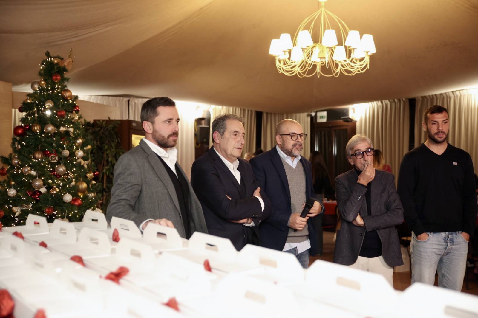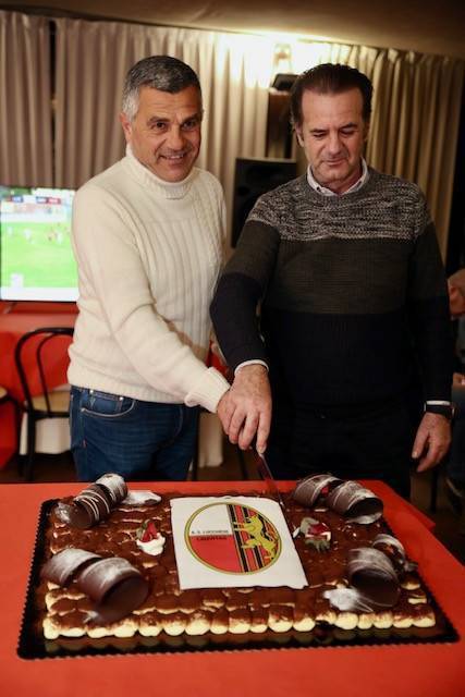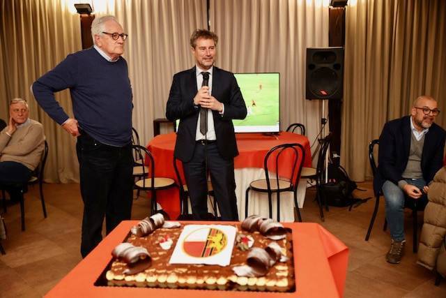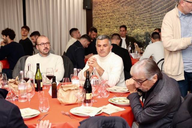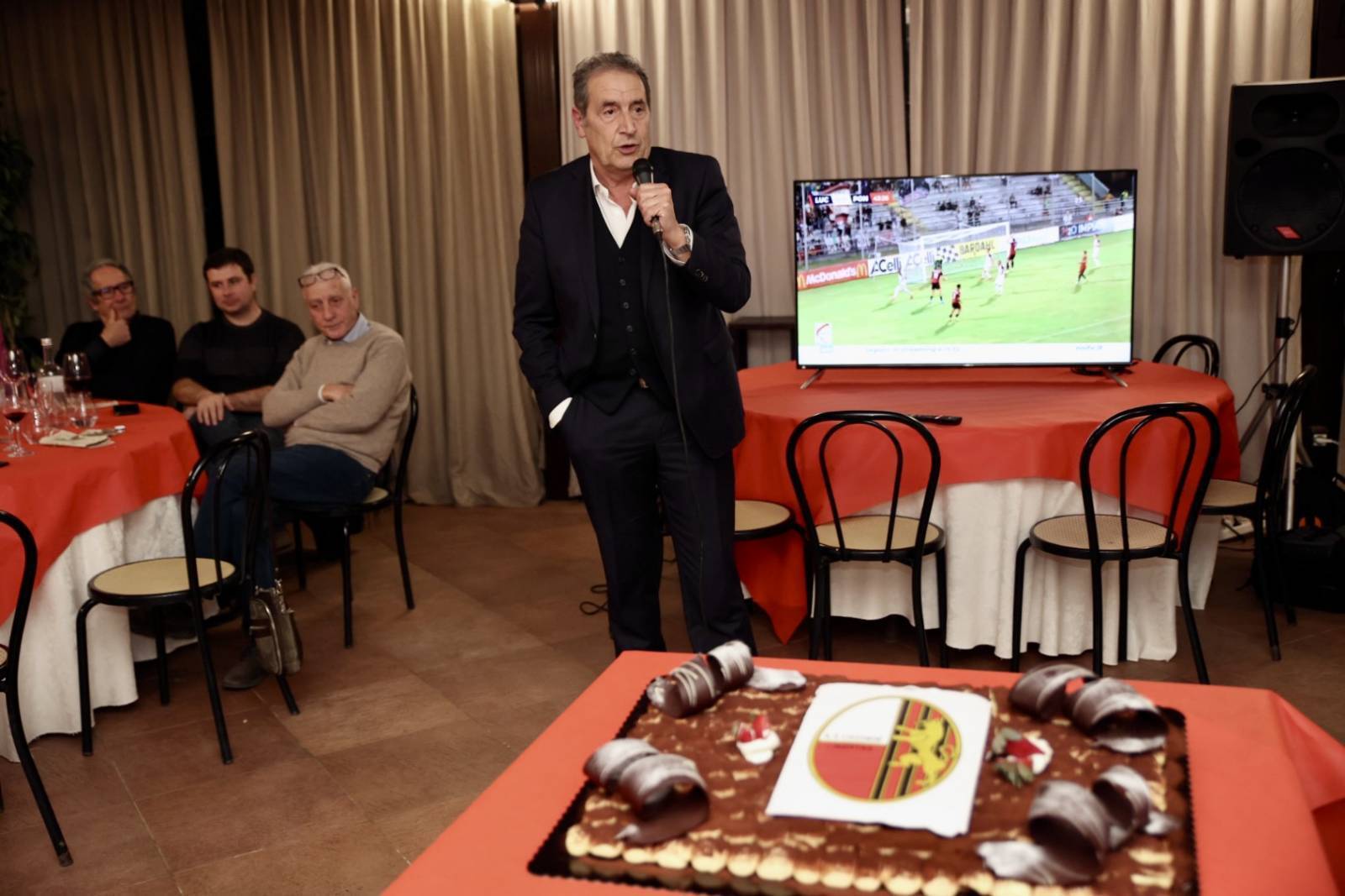 E' stato Emiliano Pellegrini lo speaker d'eccezione, ironico come sempre, mai goffo, costantemente sul pezzo come, ormai, fa da decenni suscitando sempre il sorriso e il buonumore. Di fronte ad una mega-torta dai colori rossoneri, ha introdotto, uno ad uno, i protagonisti dell'evento. E' stato il presidente Vichi il primo a prendere la parola, brevissimo, oltre agli auguri per le feste imminenti, i complimenti ad una squadra fatta, ha detto, ancor più che di atleti, di uomini. Dopo di lui ha preso la parola mister Maraia, magione bianco a collo alto, salutato con qualche coro dal fondo della sala dove stavano i suoi ragazzi. Il tecnico rossonero ha tracciato un bilancio sintetico della stagione fin qui percorsa, facendo notare che al di là di qualche scivolone, la squadra ha dato molto dimostrando di possedere volontà e carattere. Certo - ha aggiunto - in qualche circostanza abbiamo peccato di ingenuità e perso punti per strada, ma ci sta, sono cose che possono capitare. Adesso mancano ancora molte partite, siamo a metà campionato, dobbiamo fare e dare il massimo per raggiungere il nostro obiettivo.