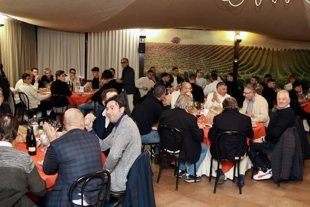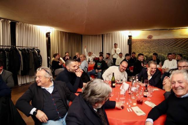 Qualcuno ha fatto notare che un evento come quello di stasera non lo si vedeva dai tempi di Egiziano Maestrelli, Pino Vitale e Aldo Grassi. Forse c'è un po' di esagerazione, ma quella Lucchese era solita, anche perché in serie B, esercitare un fascino del tutto particolare. Ebbene, se qualcuno pensa che in tavola, questa sera, è arrivata una cena di carattere dozzinale, si sbaglierebbe di grosso. Meritano i complimenti i proprietari del ristorante di Montecarlo, perché dagli antipasti - buona la pappa al pomodoro e ottimo il prosciutto crudo, deliziose le olive e anche i pomodori secchi sott'olio così come i crostini con fegatini di pollo - al primo e al secondo in particolare, con arrosto di maiale e rosticciana con contorno di fagioli cannellini e patate arrosto, queste ultime cotte al punto giusto e non bruciate o rinsecchite come talvolta accade, è stato un costante contatto con la qualità. Niente male anche il vino, un Montecarlo rosso che andava giù facile facile.