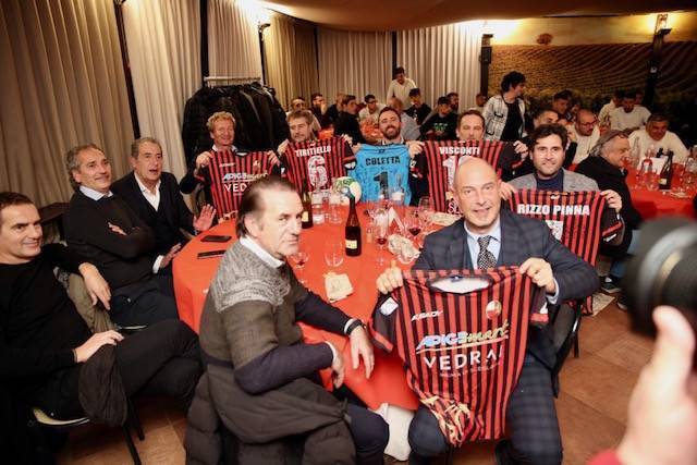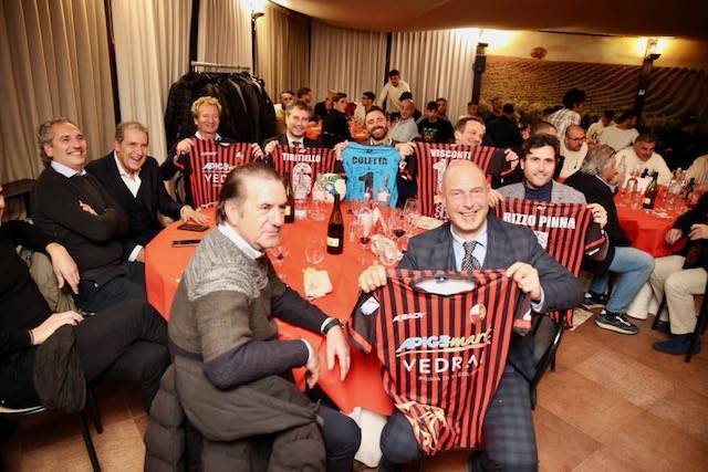 Tra i presenti e componenti lo staff, il medico sociale Adolfo Tambellini, mitico e indimenticabile e il massaggiatore Alvaro Vannucchi, ambedue un pezzo - e che pezzo - di storia rossonera. In fondo alla sala anche Lamberto Cotrozzi, storico autista del presidente Fouzi Hadj e, ancora oggi tra i collaboratori più fedeli della società.
