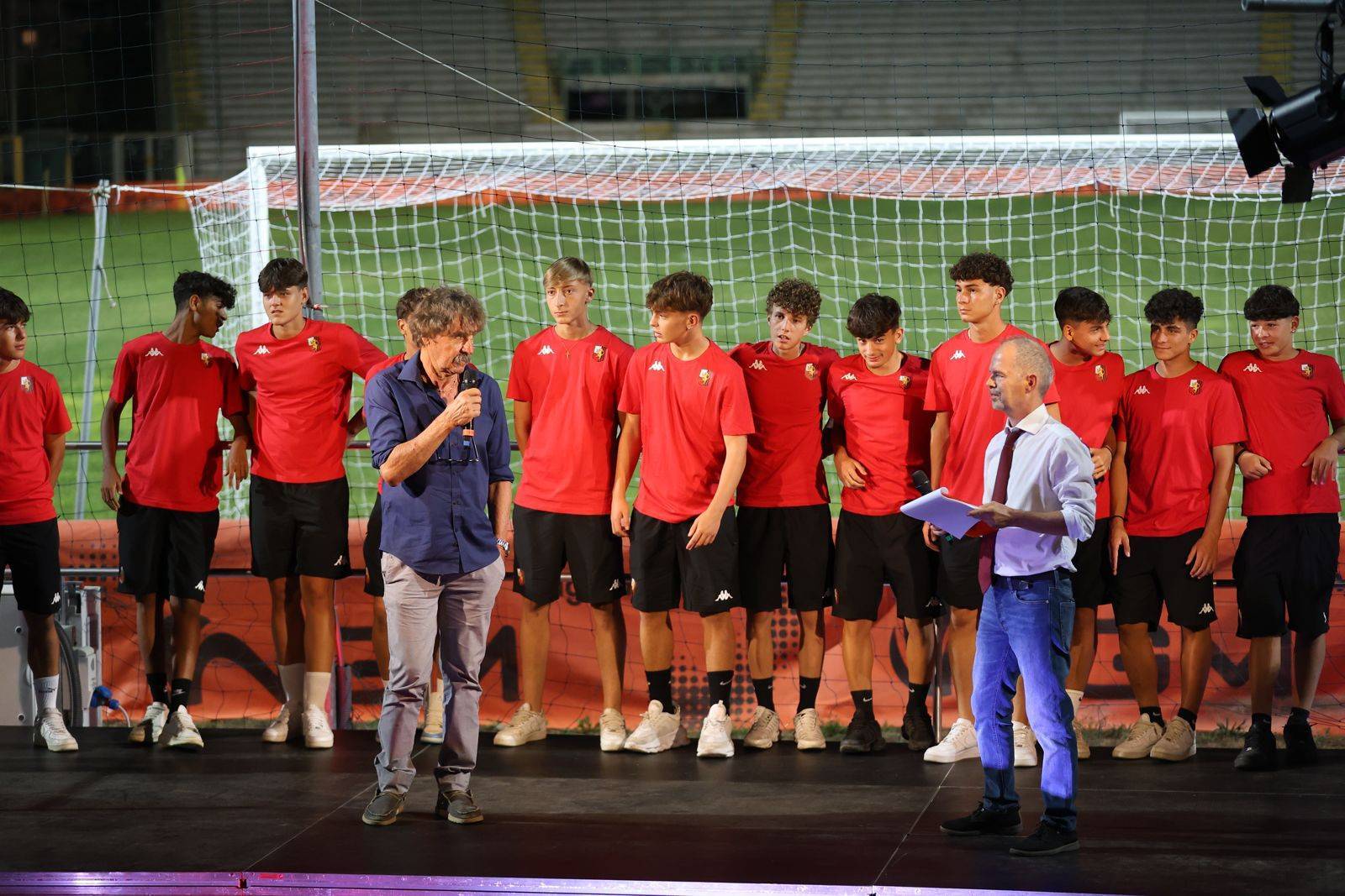 “L’amministrazione è vicina alla Lucchese – ha precisato – siamo una giunta di tifosi, siamo stati, siamo e saremo sempre vicini alla squadra della nostra città ed auguriamo ai giocatori di fare un gran campionato e di portarci in Serie B”. E’ stata poi la volta dell’assessore Buchignani che ha ricordato che, per lo Stadio Porta Elisa, sono stati spesi dall’attuale amministrazione oltre 600.000 euro di cui, quest’anno, circa 250.000 per il rifacimento delle panchine e 140.000 euro per il rifacimento completo del manto erboso. Ray Lo Faso, portando i saluti del presidente Andrea Bulgarella, impossibilitato a presenziare, ha rivolto un ringraziamento particolare a tutti i tifosi per aver sollecitato la presentazione della squadra. A proposito dei lavori dell’impianto di Saltocchio ha precisato:” Forse i tifosi non sono interessati alla logistica degli impianti ma senza questi non si può fare calcio. Abbiamo saldato 290.000 euro di debiti arretrati per chiudere la pratica di agibilità con il CONI. Abbiamo fatto nuovi lavori per circa 140.000 euro che hanno riguardato le tribune, la palestra per la prima squadra ed i nuovi spogliatoi degli arbitri. Per quanto riguarda il nuovo stadio, siamo pronti a partecipare al bando per la sua realizzazione”. Sul palco è poi salito, tra gli applausi dei tifosi, un’icona, una bandiera della Pantera, Massimo Morgia, coordinatore tecnico del settore giovanile rossonero che ha fatto il punto sul lavoro sul settore giovanile e sugli obiettivi futuri incentrati, principalmente, a riportare la Lucchese ad essere la squadra di riferimento nel panorama calcistico del territorio. Moreno Micheloni, SLO della Lucchese, ha premiato tre storici tifosi rossoneri ovvero Enrico Turelli, Claudio Venturi ed Eugenio Spadoni, omaggiandoli con un abbonamento per assistere alle partite della Lucchese nel loro settore preferito. Prima della presentazione della prima squadra Conca ha dato la parola a Stefano Grassi, AD dell’azienda Affida, per il secondo anno sponsor della squadra, oltre a ricordare lo sponsor tecnico Robe di Kappa. E, finalmente, è arrivato il momento della presentazione della squadra, dello staff tecnico e dello staff medico. Qui a farla da padrona, per la verità, è stato il supporto e l’incitamento dei tifosi che, tra sventolio di bandiere, cori e fumogeni, hanno accompagnato e, in alcuni casi, sovrastato le voci dei giocatori, capitanati da Giorgio Tumbarello, che si sono alternati al microfono per rispondere alle domande di Conca. Visto l’inizio di campionato non decisamente fortunato, è stato forte il messaggio che i tifosi hanno voluto trasmettere alla propria squadra. Gettare il cuore oltre l’ostacolo, lottare e battersi per onorare i colori ed i valori di una squadra che vanta quasi 120 anni di storia. E mister Gorgone ha ringraziato tutti i tifosi per una presenza non scontata in un momento, se pur iniziale, non facile. “Le parole non servono più di tanto – ha aggiunto – e spero che la squadra possa rappresentare questi tifosi. Mi auguro che i giocatori mettano in secondo piano il cognome che hanno dietro la maglia e mettano in primo piano il simbolo della Lucchese. Il gruppo che ho a disposizione è sicuramente serio, coeso ed umile. L’importante sarà l’atteggiamento della squadra non solo perché i tifosi lo apprezzano, oltre i limiti che possiamo avere, ma soprattutto perché è quello che farà la differenza sul campo nel corso della stagione”. Sullo striscione che i tifosi hanno esposto nella foto che la squadra ha fatto, alla fine, di fronte alla curva ovest si legge “Sudore, sangue e gloria”. La prossima trasferta di Ferrara sarà il primo banco di prova per veder se questo desiderio dei tifosi sarà esaudito.