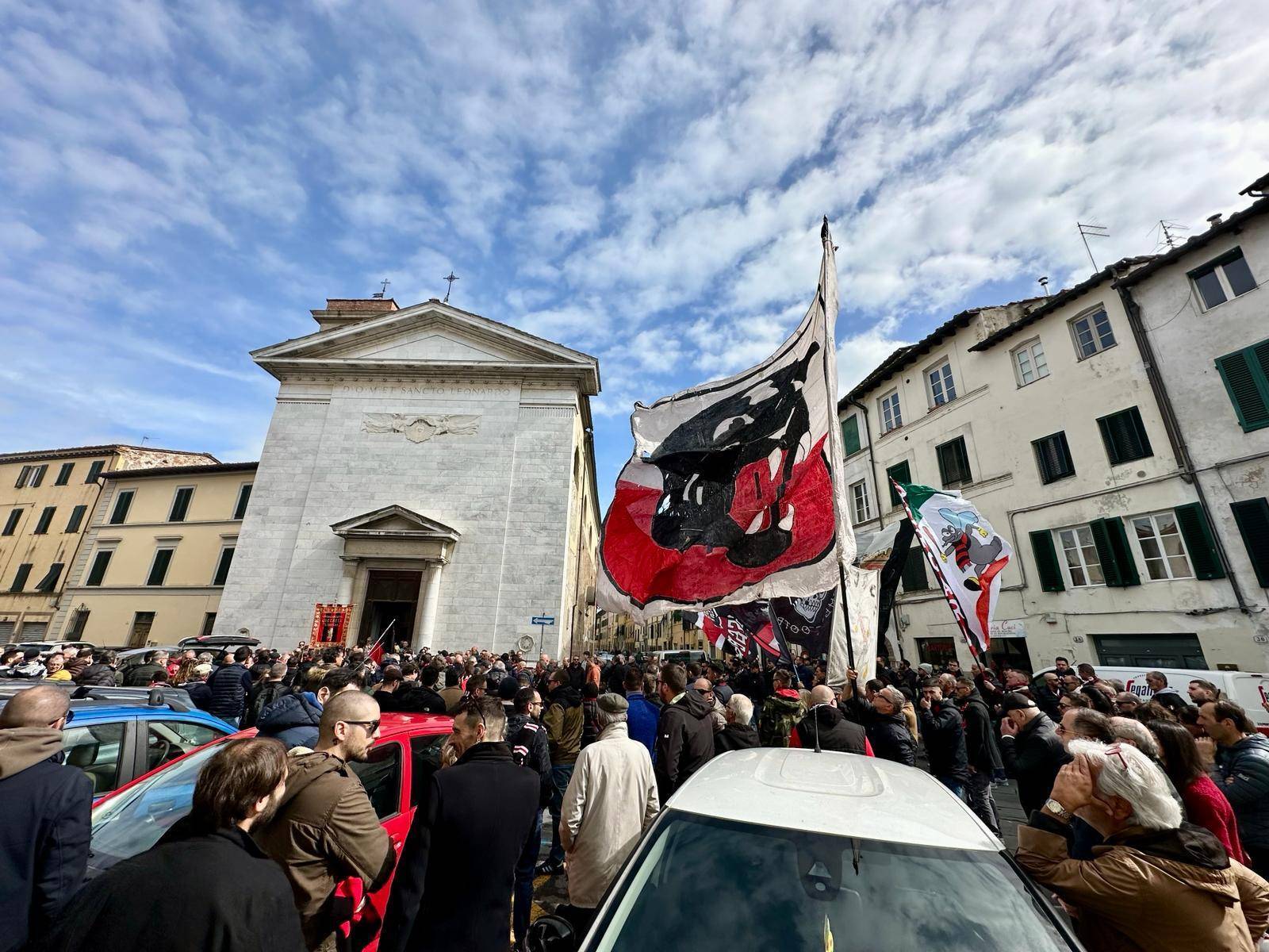 In chiesa la presenza di tre personaggi di spessore come Massimo Morgia, Francesco D'Urso e Lucio Nobile, poi, una delegazione con i giocatori della Lucchese 1905 guidati da Bruno Russo. La città, diciamolo pure, si è fermata per salutare uno dei suoi figli e lo ha fatto nel migliore e più corretto dei modi non potendo, per ovvie ragioni, porlo in essere durante la partita di campionato che si giocherà domani pomeriggio a inizio della quale, però, sarà osservato un minuto di silenzio.