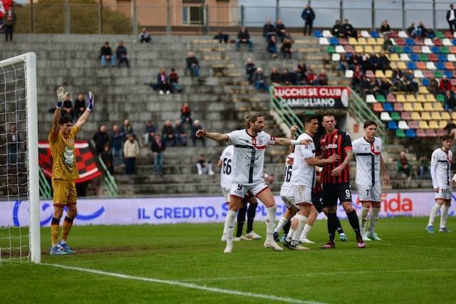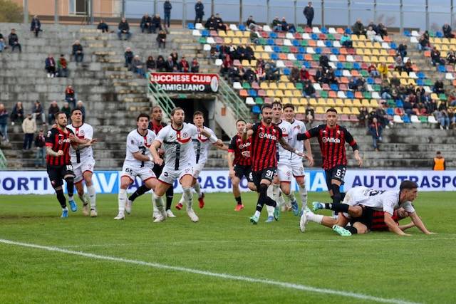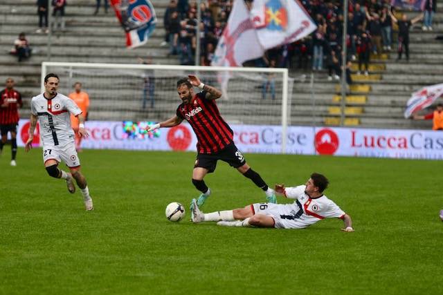 A sette giornate dalla fine del campionato di Serie C, per la 32^ giornata del Girone B si affrontano la Lucchese 1905 ed il Campobasso. I molisani di mister Prosperi, 13^ in classifica con 36 punti, salgono al “Porta Elisa” forti di un vantaggio di 10 punti sui rossoneri e di 8 sulla zona playout e sono reduci dall’importante vittoria casalinga contro l’Ascoli per 2-0. I rossoneri si trovano a fare i conti con una classifica pesantemente condizionata dalla penalizzazione, senza la quale sarebbero in una condizione relativamente più tranquilla, ma tant’è. La Pantera sarà quindi chiamata a cercare di fare il bottino pieno per cercare di uscire da questa situazione di classifica molto delicata. Nelle ultime sei partite, eccezion fatta per la sciagurata trasferta di Pescara, gli uomini di Gorgone hanno sempre portato a casa punti e se oggi riuscissero a ripetere la prestazione sciorinata contro la capolista Virtus Entella, almeno sul campo potrebbero guardare al futuro con più ottimismo. Arbitra l’incontro il fischietto veronese Alberto Poli. Parte in avanti il Campobasso che spreca subito un’ottima occasione, su dubbia posizione di fuorigioco di Serra che, al 3’, calcia alto sopra la traversa da ottima posizione. Ed è la squadra ospite a provare a fare la partita con i rossoneri che sembrano un po’ contratti. Il primo quarto d’ora non regala grandi emozioni, eccezion fatta per un miracolo di Melgrati che, a tu per tu con Di Nardo, compie un vero prodigio e, di piedi, nega il vantaggio degli ospiti. Va Selvini dalla bandierina, al 17’, e trova al centro Magnaghi che, in precario equilibrio, calcia senza però impensierire l’estremo Neri. Conclusione potente dalla distanza, al 20’, del centrocampista ospite Serra che non finisce molto lontano dalla porta difesa da Melgrati. Ci prova anche Bifulco, al 22’, ma la sua conclusione a giro, dal limite dell’area, finisce tra le braccia del portiere rossonero. Alla mezz’ora del primo tempo, ma con un Campobasso che sembra crederci di più, il risultato è ancora fermo sullo 0-0. Ottima azione della Pantera, al 34’, sull’asse Galli Selvini, con quest’ultimo che, pur sbagliando l’aggancio, serve l’accorrente Rizzo che però, da buona posizione, spara alto sopra la traversa. Ci prova Magnaghi, dal limite, al 43’, ma la sua botta dal limite è deviata in angolo dall’attento Neri che gli nega il gol. Sul successivo calcio d’angolo è sempre il numero 9 rossonero che, di testa, manda il pallone al lato della porta del Campobasso. E senza minuti di recupero termina un primo tempo che a visto il Campobasso più propositivo, e pericoloso, nella prima metà ma la Lucchese ha atteso, si è difesa con ordine e, nel finale di frazione, si è resa pericolosa in un paio di occasioni con Rizzo e Magnaghi. Si riparte con la Lucchese che prova subito a spostare il baricentro in avanti alla ricerca del gol che sblocchi la partita. Ed è Galli, al 47’, a battere di testa a rete, su punizione dalla tre quarti, ma è bravo Neri a distendersi sulla sua sinistra ed a bloccare il pallone in presa bassa. Di nuovo vicina al gol la Lucchese, al 54’. Il destro dal limite di Magnaghi finisce, però, di poco fuori dallo specchio della porta difesa da Neri. Ed in colpo solo, al 68’, vengono espulsi per proteste, sia il direttore sportivo Ferrarese che il mister Gorgone. E la sfortuna si abbatte sulla Lucchese, al 69’, con la palla colpita di testa da Fedato, su cross di Gemignani, che prima centra la traversa, sbatte sulla linea e termina tra le braccia di Neri. Ci riprova di nuovo la Pantera, al 74’, con uno scatenato Gemignani che, dal limite, spedisce la palla di poco fuori dallo specchio della porta. Quando manca un quarto d’ora alla fine della partita, il risultato è fermo sullo 0-0. Passa in vantaggio la Lucchese, meritatamente, all’80’, su rigore segnato da Selvini per fallo netto di Remy su Gucher. Raddoppio lampo della Lucchese, sempre con Selvini che, dopo appena due minuti, lanciato in contropiede, scarta Neri ed appoggia in rete. Sono 6 i minuti di recupero. La Lucchese gestisce il doppio vantaggio ed al fischio dell’arbitro Poli esulta il Porta Elisa per una vittoria meritata della Lucchese che, grazie a questo successo, può continuare a cullare, sul campo, speranze di salvezza. Vittoria Meritata per gli uomini di Gorgone che continuano a dimostrare un grandissimo attaccamento alla propria maglia, a tutti i propri tifosi ed a tutta la città.