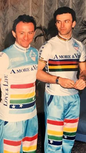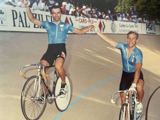 "Già alla Murella - risponde il tre volte campione del mondo - ho risentito delle nuove metodologie di allenamento che dovevamo adottare. Gli alimenti, il calcolo della dieta e la ricerca del peso ideale necessitavano di un fabbisogno alimentare che al mio fisico non era congeniale. Passato all'Alfa Lum le cose non cambiarono fino a che non trovai la sistemazione giusta con la Pepsi Fanini, una squadra di dimensione internazionale che mi mise a mio agio e quando incontrai il mio nuovo Patron la prima cosa che mi disse: a me interessano i campionati del mondo su pista, perché hai la stoffa per vincerli".