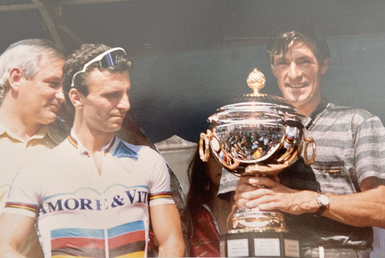 "Ad ogni gara, non so come faceva, me lo trovavo all'arrivo al di là del cordone. Si faceva spazio pur di scorgermi ad ogni premiazione. Mi ha sempre seguito fin da quando ero dilettante e non pensavo minimamente alla pista. Vinsi il campionato italiano in linea di categoria nell'81 e il G.P.Liberazione nell'83. Mio padre è sempre stato una figura importante per me ed ancora, nonostante sia morto da 14 anni, ne sento la mancanza."
