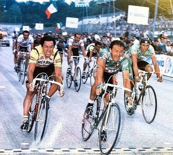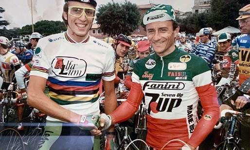 "Quel titolo - dice - mi dette le stesse gioie del primo che vinsi nel '78 fra il tripudio dei miei tifosi sulle strade di casa, nei luoghi dove sono nato e dove ho trascorso la mia esuberanza giovanile. Anche allora il podio fu importante, perché superai nell'ordine grandi campioni come Francesco Moser e Giuseppe Saronni. Contro quest'ultimo ho perso spesso le volate, ma ho avuto il merito di superarlo anche nella Milano Sanremo del 1980, la mia migliore stagione costellata dal successo nella Parigi-Bruxelles."