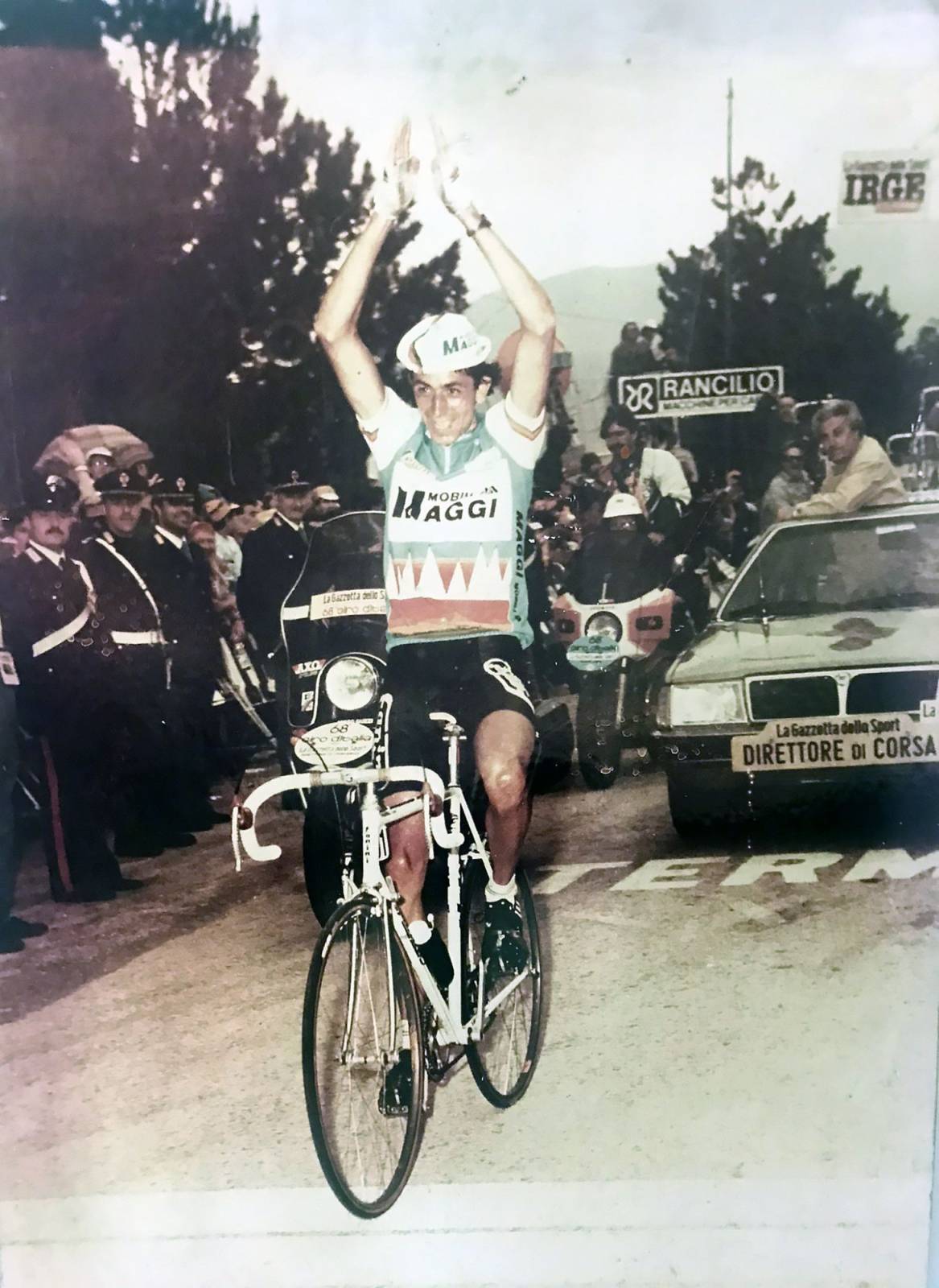 " In discesa attaccò Stefano Giuliani che ripresi e staccai successivamente in piano. Poi l' arrivo in salita, considerando le mie caratteristiche di scalatore, mi consentì di aumentare il vantaggio sugli inseguitori. Si festeggiò ma per poco tempo perché il giorno seguente si doveva essere di nuovo alla partenza della tappa successiva. Questo stato emotivo positivo fu un potente amplificatore delle nostre performance e della coesione del gruppo. "