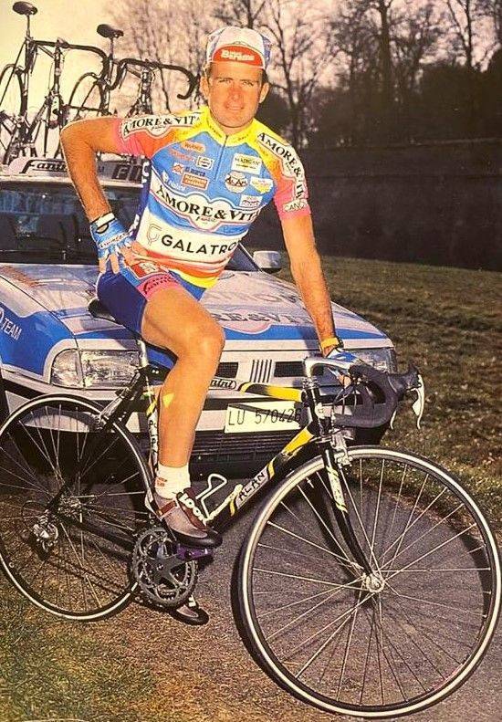 "All'esordio tra i prof. il mio primo Giro d'Italia nel 1987. Mi trovai a correre nell'ultima tappa la crono individuale da Aosta a Saint Vincent. Mi fu inserita la ruota lenticolare ma non avevo esperienza e non sfruttavo la maggior resa aerodinamica nel gestire come avrei dovuto il maggior peso della stessa ruota. Ciò nonostante giunsi tredicesimo, non male per un principiante che correva inconsapevolmente con qualche chilo di troppo. Nell'88, sempre al Giro d'Italia, alla corte di Carlino Menicagli, quando le mie ambizioni cominciavano a salire, caddi in una tappa a Caserta rimediando una frattura esposta alla gamba sinistra con la conseguente riduzione della stessa di 7-8 millimetri, diagnosticata in eterometria. Rimediai alla dismetria correndo dopo assai tempo con uno spessore alla gamba sinistra per equilibrare gli arti inferiori."