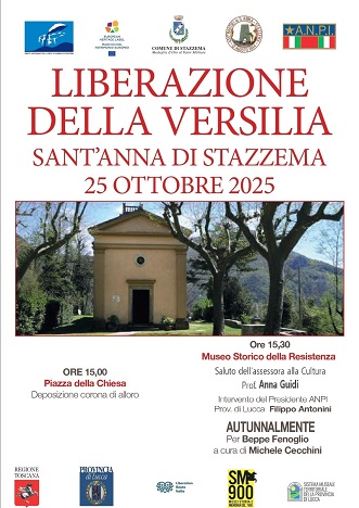 La Versilia fu liberata a pezzi. Non c'è una data precisa e univoca della liberazione di tutte le zone della Versilia. A Sant'Anna, ad esempio, arrivarono gli americani dopo qualche giorno che era stata liberata Pietrasanta. Stazzema fu liberata da brasiliani, inglesi e americani. Ad Arni i fascisti della Monterosa rimasero per un altro inverno. Per celebrare la Liberazione della Versilia, verrà quindi narrata la storia così com'è, una Liberazione a pezzi, sabato dalle ore 15,00 a Sant'Anna, nel Parco nazionale della Pace. A ripercorrere questi fatti sarà il prof. Michele Cecchini che lo farà tramite il racconto di Beppe Fenoglio. Dopo la deposizione di una corona di alloro al cippo dei caduti sulla piazza della chiesa, alle ore 15,30 l'incontro si svolgerà nel Museo storico della Resistenza. Nel Parco nazionale della Pace di Sant'Anna sarà inoltre un autunno con tante sorprese. Per l'amministrazione comunale di Stazzema sarà presente alle celebrazioni l'assessore alla cultura Anna Guidi.