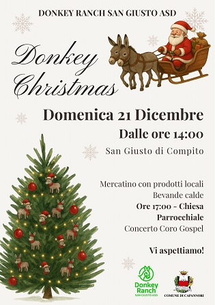 Domenica 21 dicembre a San Giusto di Compito si svolgerà l'iniziativa 'Donkey Christmas'. A partire dalle ore 14 sarà presente un mercatino natalizio di prodotti locali e sarà possibile degustare bevande calde.