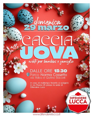 Domenica 28 marzo 'caccia alle uova' per bambini al Parco Norma Cossetto con Difendere Lucca