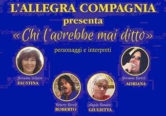 A Lucca, giovedì prossimo 12 marzo dalle ore 21:15 presso la Sala della Musica e della Cultura del centro commerciale Il Pinturicchio in viale Batoni 127, il gruppo teatrale amatoriale L'Allegra Compagnia mette in scena la commedia musicale ed in vernacolo lucchese: 'Chi l'avrebbe mai ditto', scritta da Giovanna Vellutini in collaborazione con Angela Bandoni e ispirandosi agli aneddoti del poeta e commediografo lucchese Cesare Viviani (Monte San Quirico 4 febbraio 1937-Fucecchio 2 febbraio 1993). Si preannuncia quindi una serata all'insegna delle risate con la comicità di Giovanna Vellutini e Angela Bandoni e della buona musica con i cantanti Giovanna Bartoli e Roberto Borrelli.