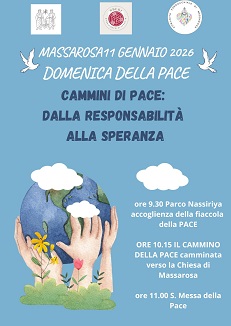 In occasione del mese di gennaio, che la Chiesa dedica alla pace, domenica 11 gennaio si terrà a Massarosa l'evento «Cammini di pace: dalla responsabilità alla speranza». Il ritrovo è fissato per le ore 9.30 presso il parco Caduti di Nassirya; da qui partirà la «Camminata della pace» verso la chiesa parrocchiale dove, alle 11, sarà celebrata la messa. Durante la funzione si pregherà affinché la violenza e i soprusi smettano di essere considerati mezzi per risolvere i conflitti che sconvolgono il mondo. L'appuntamento è organizzato dagli Uffici diocesani per la Pastorale sociale e del lavoro e per l'Ecumenismo e il dialogo interreligioso, in collaborazione con la comunità parrocchiale locale. Le celebrazioni e i momenti di approfondimento dedicate alla pace proseguiranno poi domenica 18 gennaio presso la parrocchia San Giovanni Bosco a Viareggio e si concluderanno nel centro storico di Lucca il 24 gennaio.