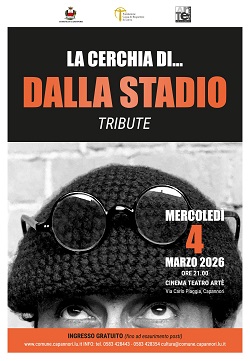 Mercoledì 4 marzo, alle ore 21 al cinema teatro Artè si terrà un omaggio a Lucio Dalla con la tribute band lucchese 'La Cerchia di Dalla-Stadio'. L’evento, promosso in collaborazione con il Comune, è dedicato alla musica dell’autore e di tutti coloro che hanno collaborato con lui durante la sua carriera, come gli Stadio, Ron, De Gregori, Morandi ed altri.
