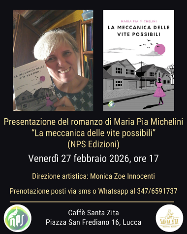 Proseguono gli incontri letterari al Caffè Santa Zita, sotto la direzione artistica di Monica Zoe Innocenti. Venerdì 27 febbraio 2026, alle ore 17, lo storico ed elegante caffè, sito nel centro di Lucca, ospiterà la scrittrice lucchese Maria Pia Michelini con il suo romanzo “La meccanica delle vite possibili”, (NPS Edizioni). Un appuntamento dedicato alla letteratura contemporanea, alle storie di rinascita e alla forza di coloro che osano vivere intensamente.