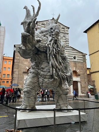 CMON, editore e designer internazionale di giochi da tavolo, giochi di ruolo e graphic novel, ha stupito il pubblico di Lucca Comics & Games davanti al suo padiglione monografico in Piazza San Giusto con il reveal dell'incredibile scultura di Cthulhu alta 5 metri, ispirata al gioco Cthulhu: Death May Die. L'enorme statua, che pesa oltre 600 kg ed è stata realizzata in oltre 5 mesi di lavoro in EPS trattato con poliuretano e resina e stampato 3D, raffigura perfettamente Cthulhu, "la cosa che non dovrebbe essere", un'entità gigantesca che ha le sembianze di un umano, di una piovra e di un drago, in assoluto il personaggio più riconoscibile del cupo e spaventoso mondo lovecraftiano.