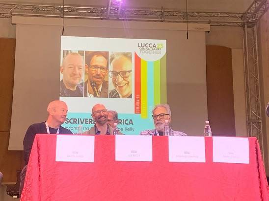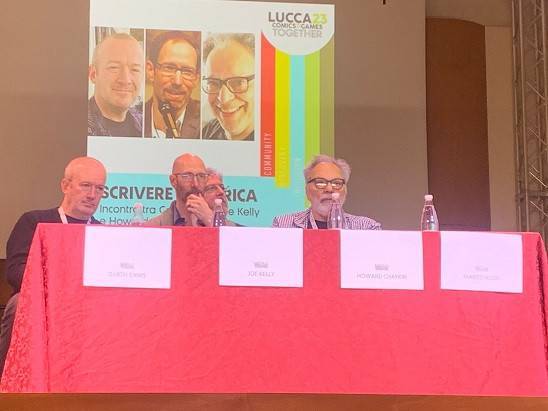 Lucca Comics & Games nel suo primo giorno di festival all’auditorium del Suffragio ha ospitato, riunendoli, tre grandi sceneggiatori che hanno raccontato l’America: Garth Ennis, Joe Kelly e Howad Chaykin.