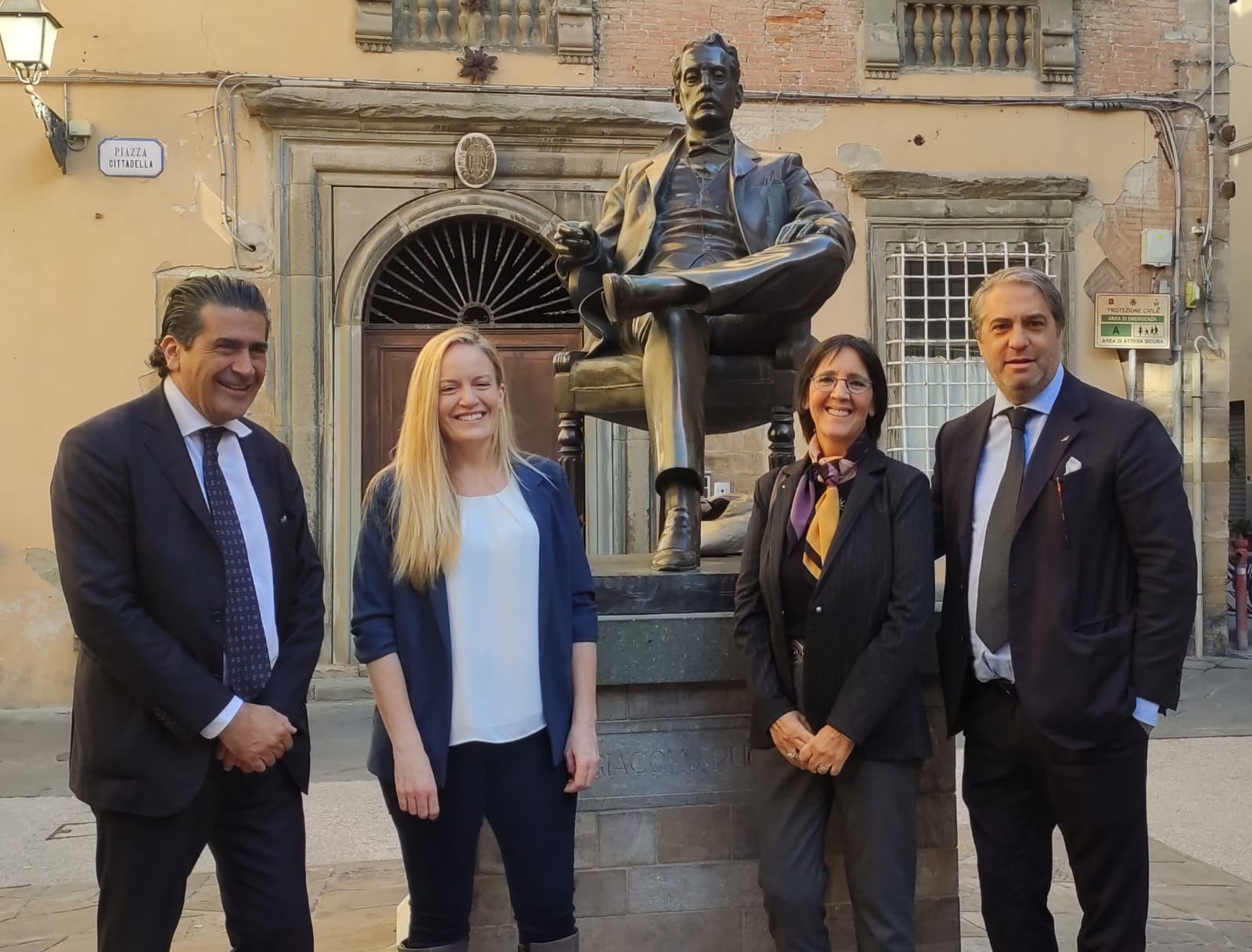 Questa mattina assieme ad Alberto Veronesi, Presidente della Fondazione Giacomo Puccini e Presidente del Comitato promotore delle celebrazioni pucciniane", Francesca Fazzi, Presidente di Lucca Crea, e Luigi Viani, Direttore della Fondazione Giacomo Puccini, dopo la foto di rito davanti alla statua del Maestro, in Piazza Cittadella, ha visitato la Casa Natale con grande ammirazione ed emozione, soprattutto quando ha suonato il pianoforte sul quale Giacomo Puccini ha composto le note di Turandot.