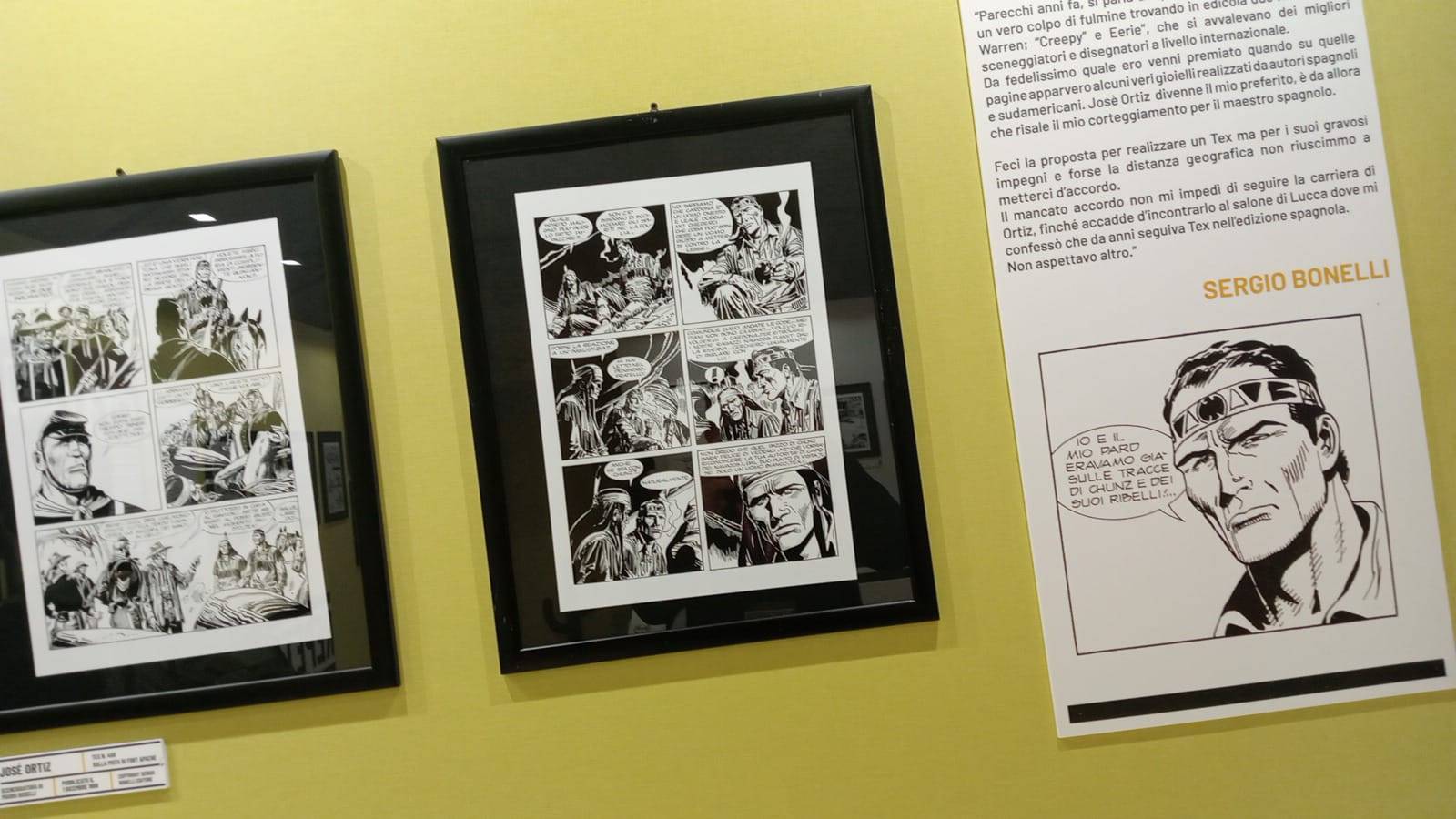 Aperta già da domenica 19 ottobre scorso presso la splendida location di Palazzo Guinigi, la mostra dedicata ad un mito del fumetto western, Tex, che sarà aperta fino a domenica sera ore 19.00, a chiusura della manifestazione. "¡HOLA, TEX!La più grande icona del fumetto italiano nell'interpretazione dei maestri ispanici", questo il nome dell'evento in questione, che mette in visione oltre 100 tavole originali, realizzate da artisti spagnoli che hanno lasciato il segno nella lunga saga del cowboy in camicia gialla. Tavole in bianco e nero e a colori, con le relative presentazioni dei vari autori, con commenti di uno dei giganti del fumetto italiano Sergio Bonelli, sono appese nelle pareti del secondo piano di Palazzo Guinigi, esposte secondo un ordine cronologico di realizzazione, e secondo un percorso che permette al visitatore di potersi gustare il fascino di una saga che non muore mai. A grandezza maggiore rispetto a quella del classico volume e con l'atmosfera elettrizzante di LuccaComics&Games, le tavole non possono non catturare l'attenzione dell'ammiratore, consentendo di immergersi dentro la scena, ritrovandosi con facile immaginazione nel mondo fatto di treni a vapore, deserto, saloom e colt. Provare per credere.