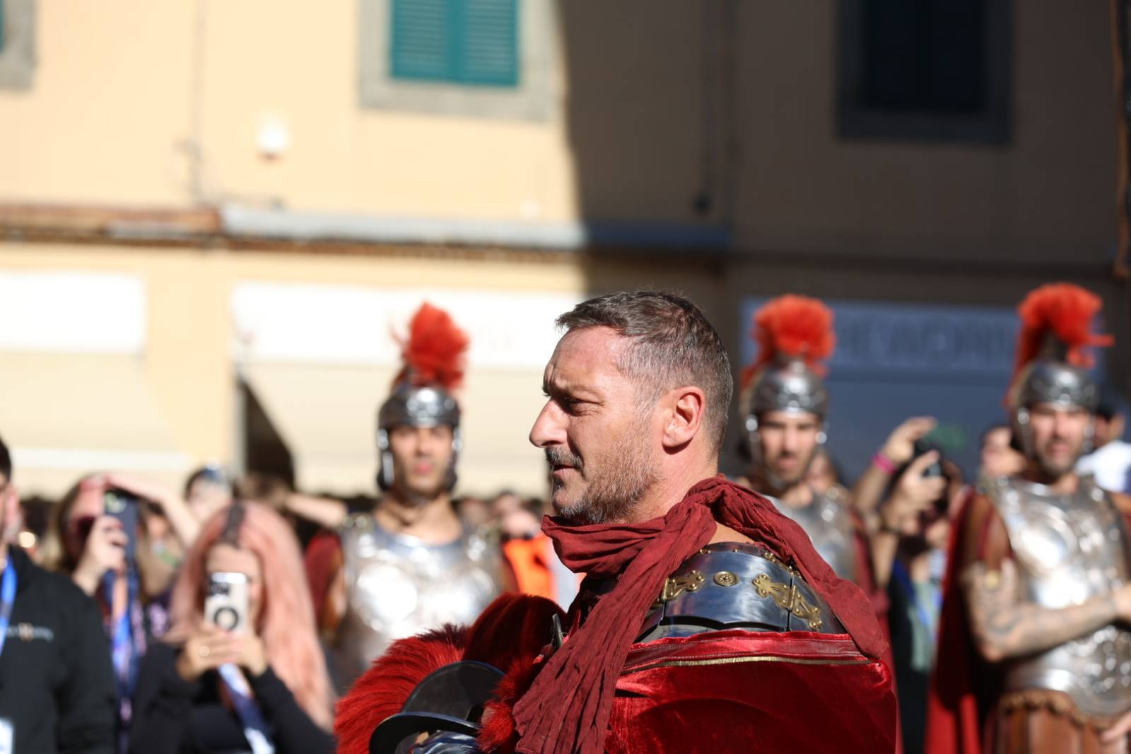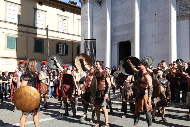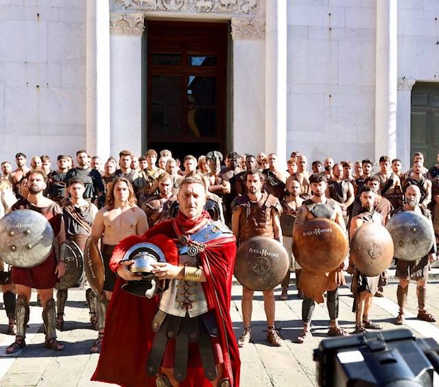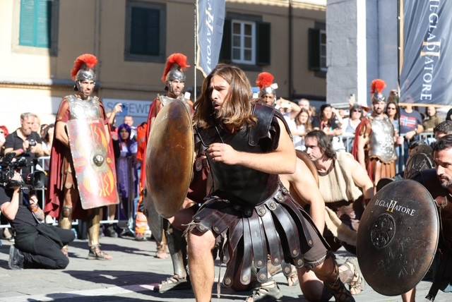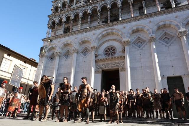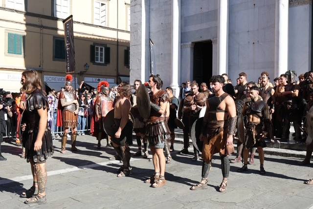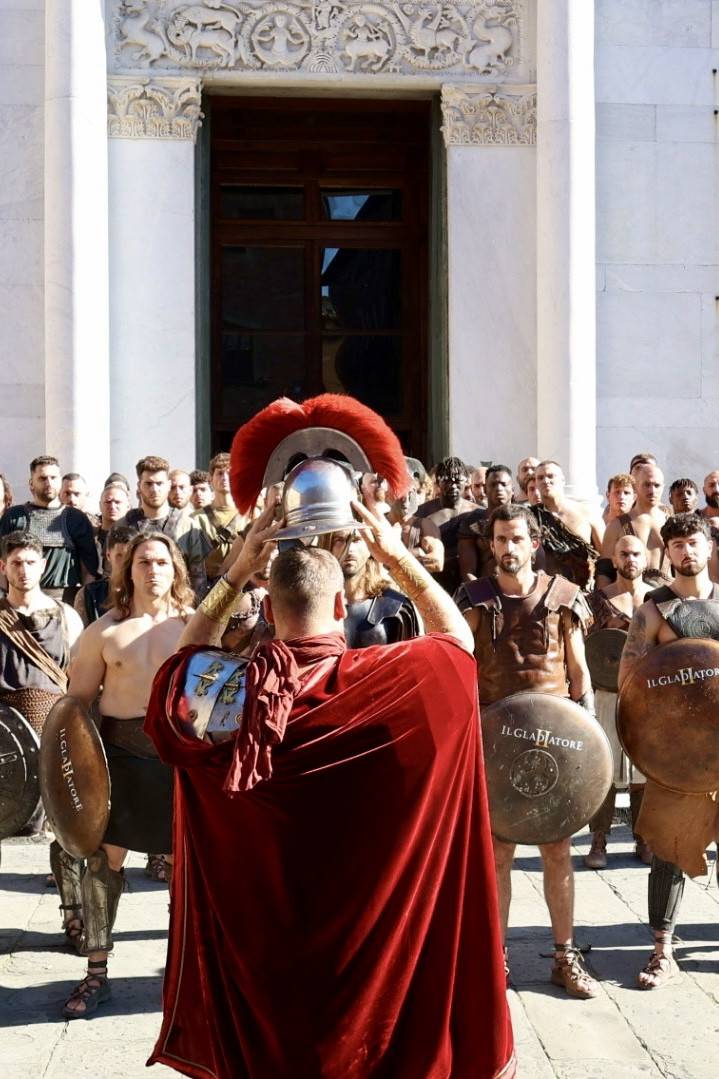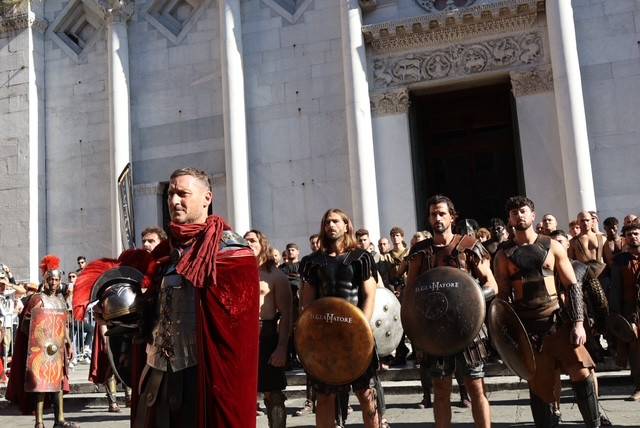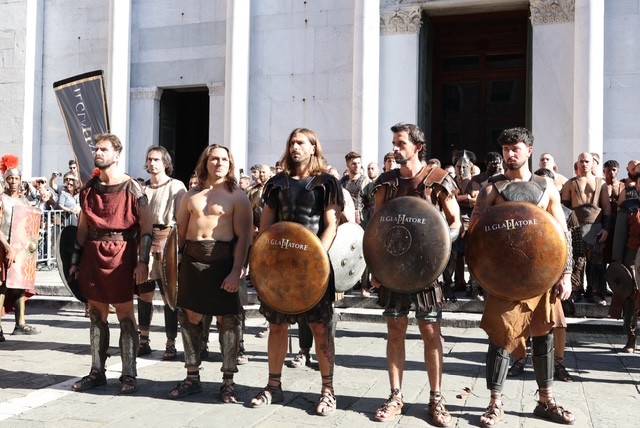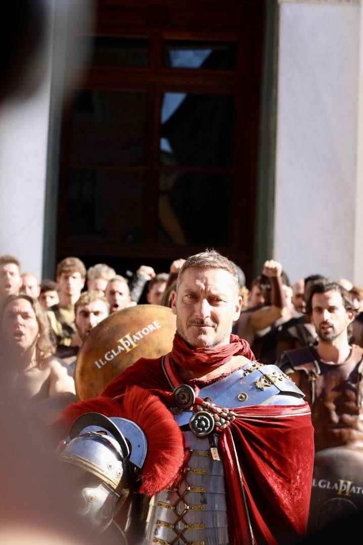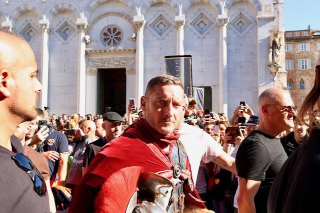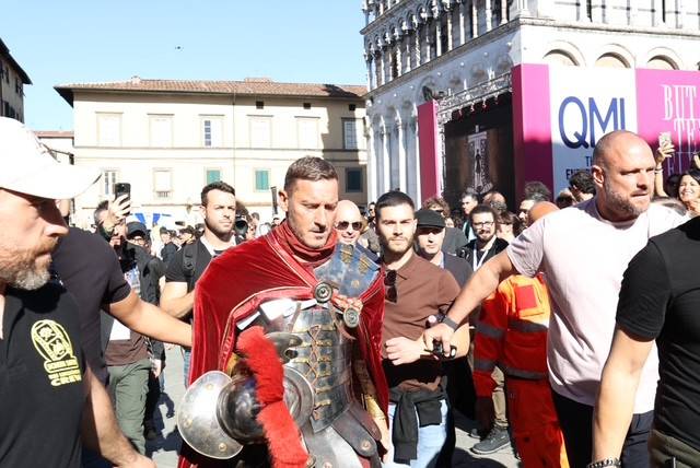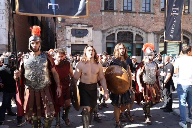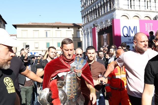 Straordinario successo a Lucca Comics & Games 2024 per la grande parata de Il Gladiatore II in collaborazione con Eagle Pictures, un evento dell'Area Movie ideata e organizzata da QMI. Una spettacolare esibizione tra le vie di Lucca, partita a mezzogiorno dal Giardino degli Osservanti e conclusasi nel cuore della kermesse, in Piazza San Michele. A sorpresa, mimetizzato tra i gladiatori, è comparso il numero uno di Roma, il capitano Francesco Totti, che si è affacciato dal balcone del loggiato pretorio salutando il pubblico di LC&G. Il Gladiatore II, sequel del film cinque premi Oscar del 2000, è diretto e co-prodotto da Ridley Scott e uscirà nelle sale italiane il 14 novembre 2024, distribuito da Eagle Pictures.