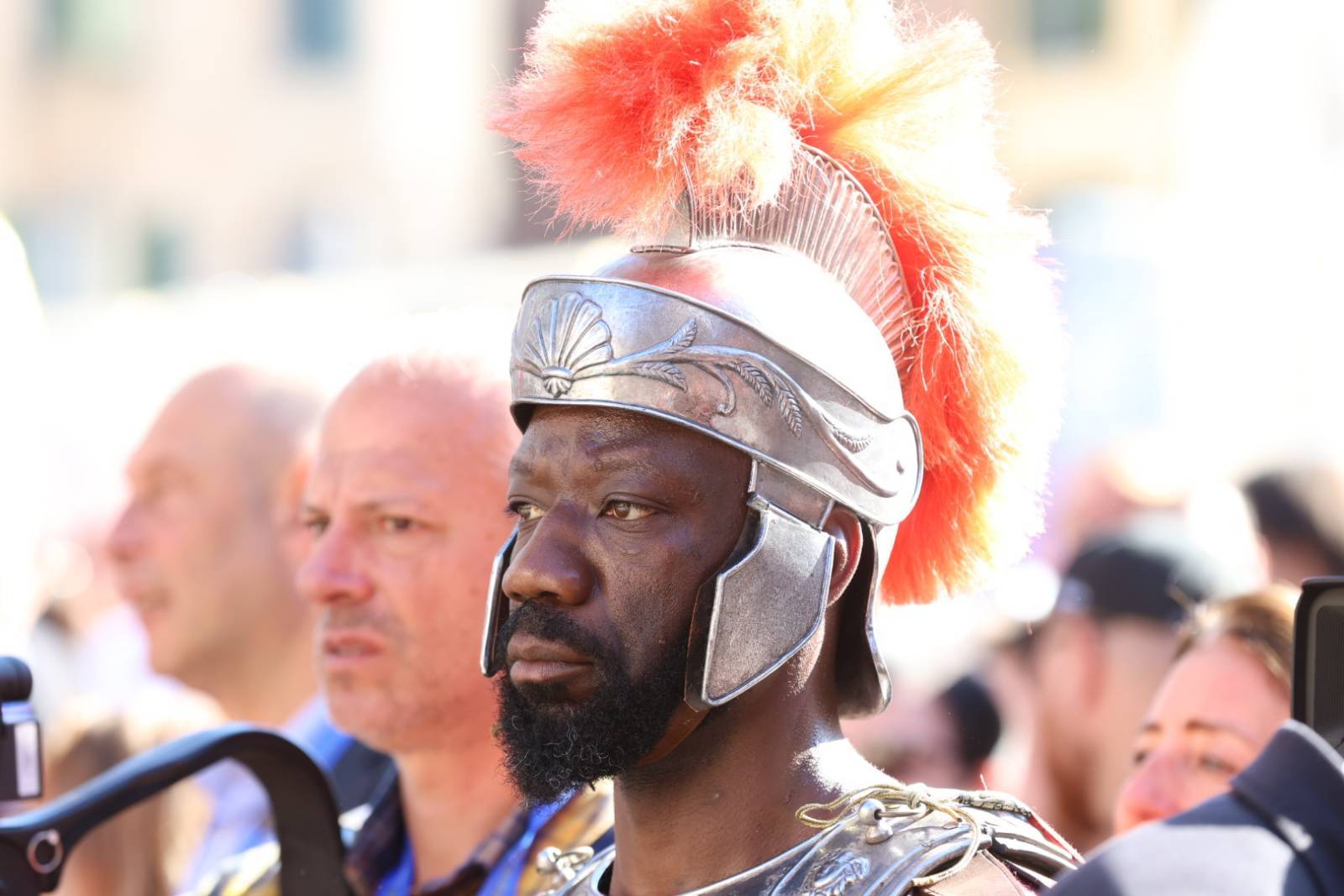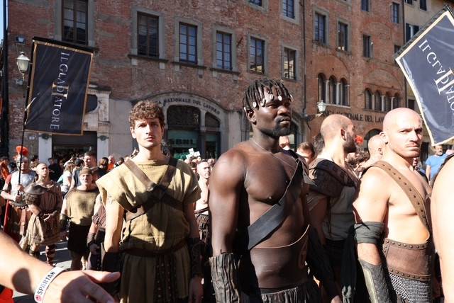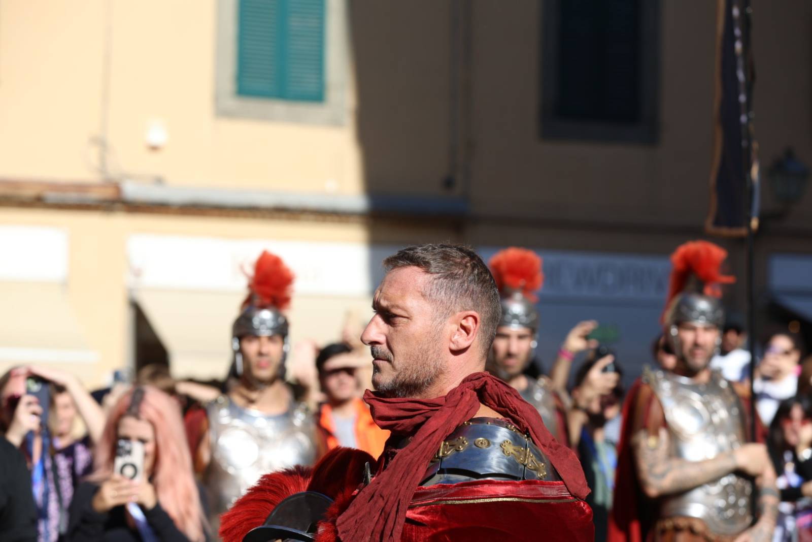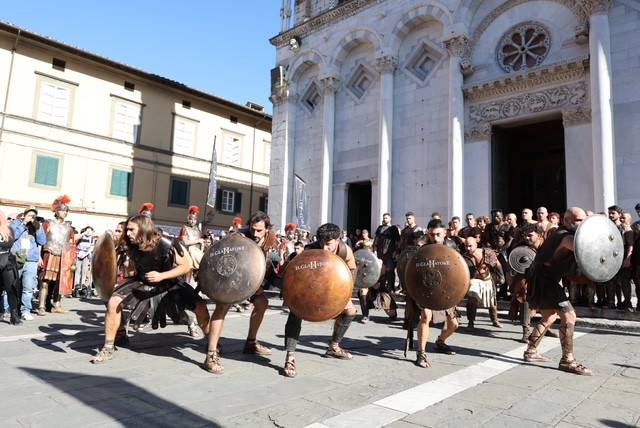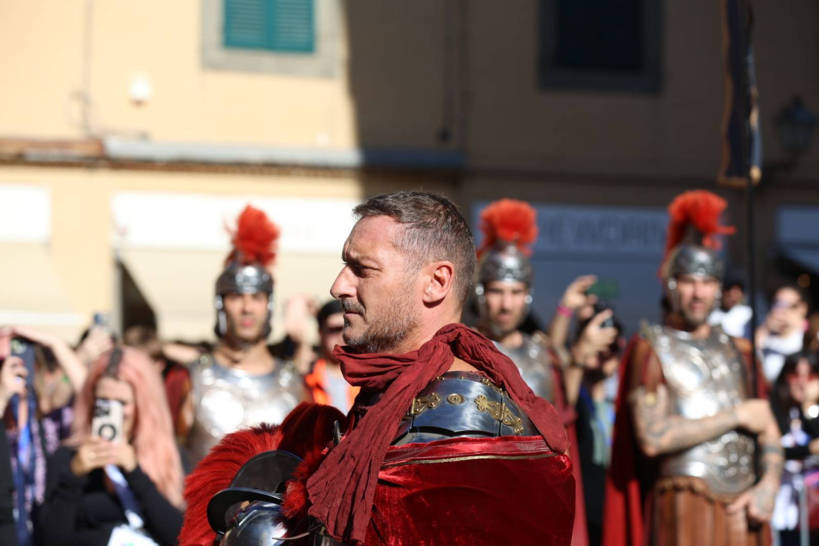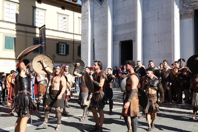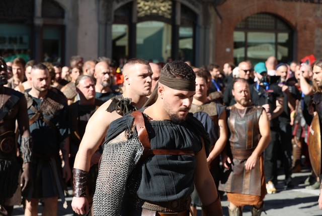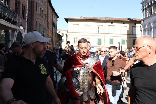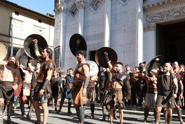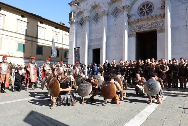 Straordinario successo a Lucca Comics & Games 2024 per la grande parata de Il Gladiatore II in collaborazione con Eagle Pictures, un evento dell'Area Movie ideata e organizzata da QMI. Una spettacolare esibizione tra le vie di Lucca, partita a mezzogiorno dal Giardino degli Osservanti e conclusasi nel cuore della kermesse, in Piazza San Michele. A sorpresa, mimetizzato tra i gladiatori, è comparso il numero uno di Roma, il capitano Francesco Totti, che si è affacciato dal balcone del loggiato pretorio salutando il pubblico di LC&G. Il Gladiatore II, sequel del film cinque premi Oscar del 2000, è diretto e co-prodotto da Ridley Scott e uscirà nelle sale italiane il 14 novembre 2024, distribuito da Eagle Pictures.