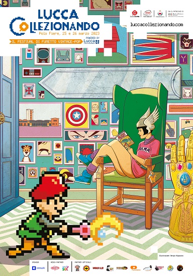 80 dettagli per un invito (e la mappa variant) – Il viaggio nei ricordi degli anni '80 e '90 parte proprio dal poster di Sergio Algozzino, ospite della manifestazione. Un'immagine carica di particolari e di omaggi alla pop culture, 80 citazioni dal mondo del fumetto, cinema, serie tv, animazione, videogames (anche in 8 bit). 80Quest è una vera sfida al pubblico, riservata ai visitatori di Lucca Collezionando 2023: chi sarà presente in fiera e individuerà almeno 60 di queste citazioni otterrà un invito per Lucca Comics & Games 2023. Inoltre, la simpatica mappa "variant" appositamente realizzata da Algozzino, sarà distribuita a chi darà la propria disponibilità a rispondere al nostro sondaggio su Collezionando 2023.