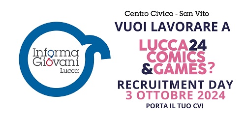 Una giornata di reclutamento al lavoro organizzata da Informagiovani insieme alle principali agenzie per il lavoro del territorio, con lo scopo di assumere temporaneamente fino a 1000 giovani maggiorenni da impiegare durante le cinque giornate di Lucca Comics and Games.