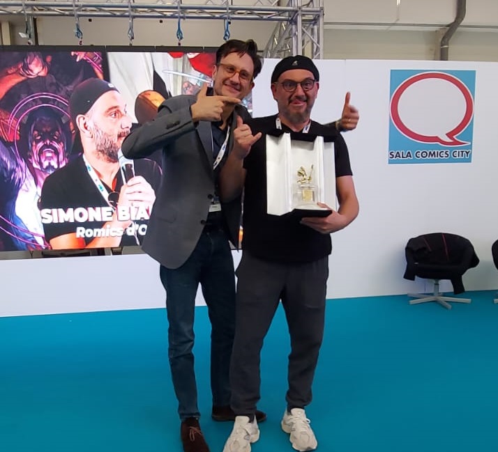 L'illustratore e pittore Simone Bianchi, maestro della comic art contemporanea, ha ricevuto oggi a Roma il Romics d'Oro e a premiarlo accanto a lui, sul palco c'era l'amico fraterno Emanuele Vietina, direttore di Lucca Comics & Games.
