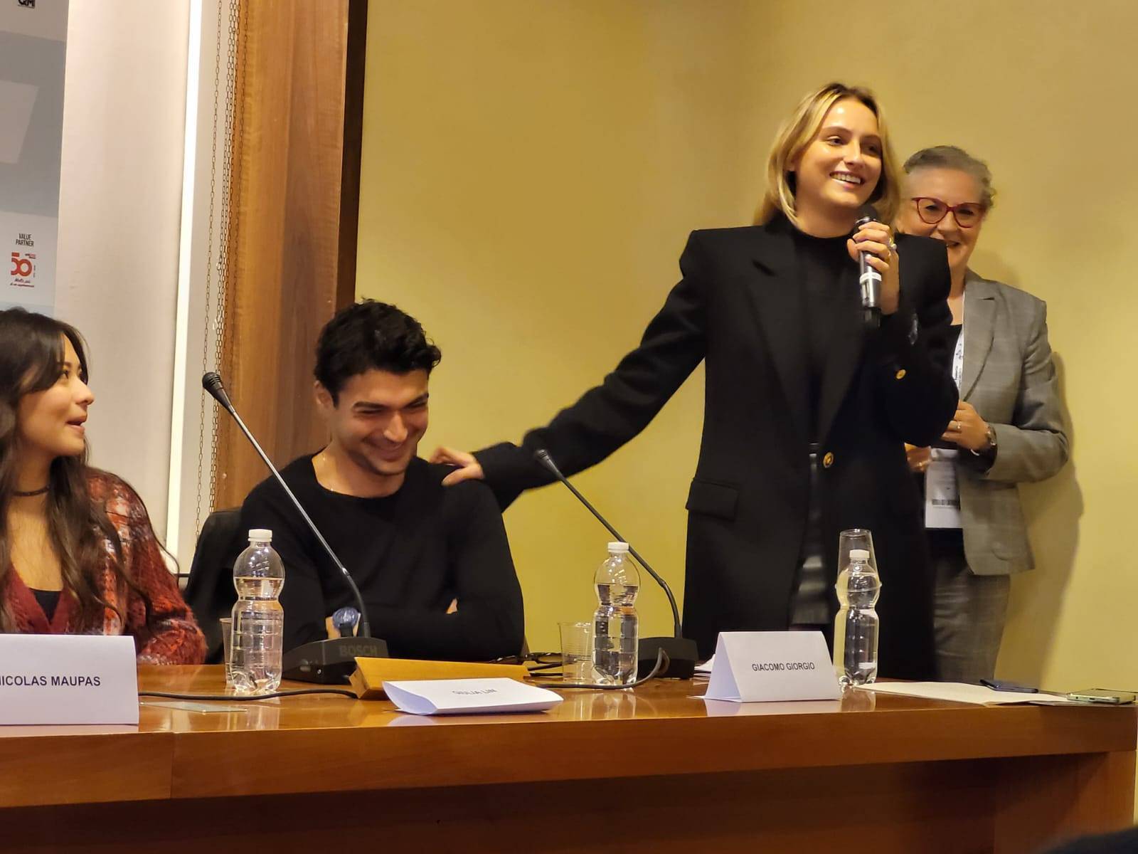 Non è l’unico tra i protagonisti della serie ad aver già conquistato il cuore degli adolescenti attraverso Mare Fuori: c’è infatti anche Giacomo Giorgio, un po’ deluso di non essere annoverato come “apporto internazionale” nel suo essere napoletano. “Il mio personaggio, Nicola, è il ragazzo della porta accanto, figlio di una famiglia della porta accanto, che si vuole bene- ha preso a raccontare dopo la battuta iniziale- Lui non ha poteri, e quello che abbiamo voluto fare attraverso il suo personaggio è stato cercare in una situazione ordinaria ciò che può essere straordinario, come si può essere leggende nella nostra vita di tutti i giorni”. Quando gli è stato chiesto se spera attraverso questa serie di potersi distaccare dal suo personaggio in Mare Fuori, ha risposto: “Se un personaggio è andato bene, perché me ne devo distaccare?”.