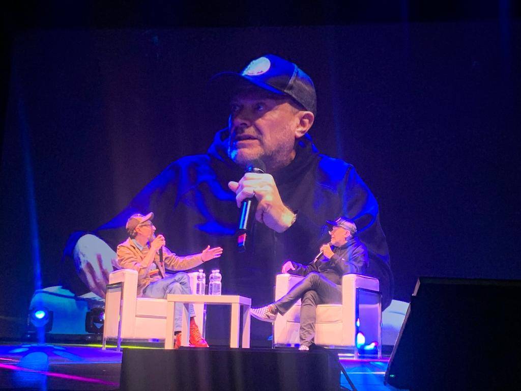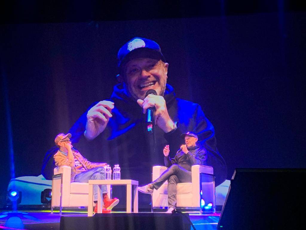 Vestito informalmente con l’immancabile cappellino nero, ha parlato del nuovo comic book, Max Forever, un album in tiratura limitata illustrato proprio da Roberto Recchioni di cui soltanto 250 copie saranno autografate dagli stessi.
