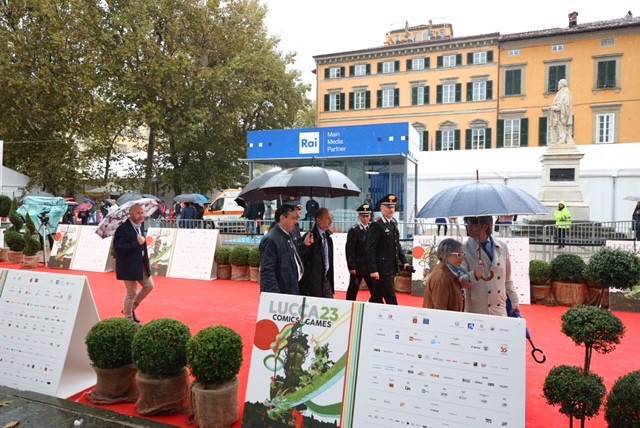 La dimensione del fumetto, dell’arte forse anche un po’ canzonatoria e sarcastica è d’altronde sempre stata caratteristica di Lucca e della Toscana in generale: l’ha sottolineato il presidente della regione Eugenio Giani, che ha ricordato come antesignani del fumetto immagini come le allegorie di giustizia, prudenza e buongoverno, risalenti agli inizi del ‘300, che si trovano nel Palazzo dell’arte della lana a Firenze. “Lucca e la Toscana nei secoli sono state caratterizzate da arte e cultura, disegno, satira, sarcasmo, ma anche da libertà e autodeterminazione: non scordiamo che noi per primi abbiamo abolito la pena di morte. Con questa manifestazione, che ad oggi conta più di 300 mila biglietti venduti, rinnoviamo il nostro messaggio di pace e di auspicio di autodeterminazione dei due popoli israeliano e palestinese”.