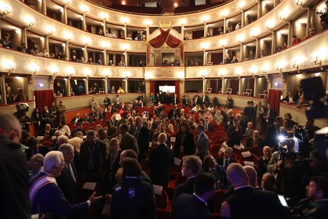 “Together è una parola che unisce, non che divide: è un messaggio di pace importante che ci arriva da questa città d’arte, con due guerre alle porte e con tante immagini tremende che ci stanno accompagnando a pranzo e a cena- ha proseguito il ministro degli Esteri Antonio Tajani- È una fortunata coincidenza quella che mi permette di annunciarvi che, in mezzo a tante sciagure, questa mattina è stato aperto il corridoio di Rafah e cominciano ad uscire dalla striscia di Gaza i primi cittadini stranieri: mi auguro che oggi possano cominciare a uscire anche i primi italiani”. Il ministro ha anche sottolineato che presto sarebbero cominciati ad entrare i tir di soccorso alla popolazione civile, tra cui un tir inviato dal governo italiano con materiale umanitario da consegnare alla popolazione civile palestinese. “Da una parte e dall’altra abbiamo visto delle scene orribili: le vittime non sono militari ma sono neonati, bambini, donne, persone che nulla hanno a che fare con il combattimento. Vorremmo che tutto questo, così come la guerra in Ucraina, cessi il prima possibile”, ha affermato ancora.