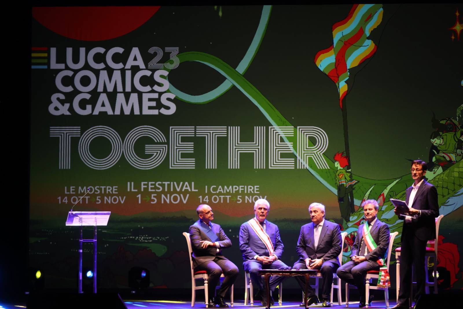 Alla presenza delle autorità locali e nazionali, dall’immancabile sindaco di Lucca Mario Pardini alla presenza eccezionale del ministro degli esteri Antonio Tajani, la cornice affascinante e iconica del teatro del Giglio ha accolto la cerimonia di apertura di questi cinque giorni dedicati agli appassionati di cultura pop di tutta Italia e oltre.