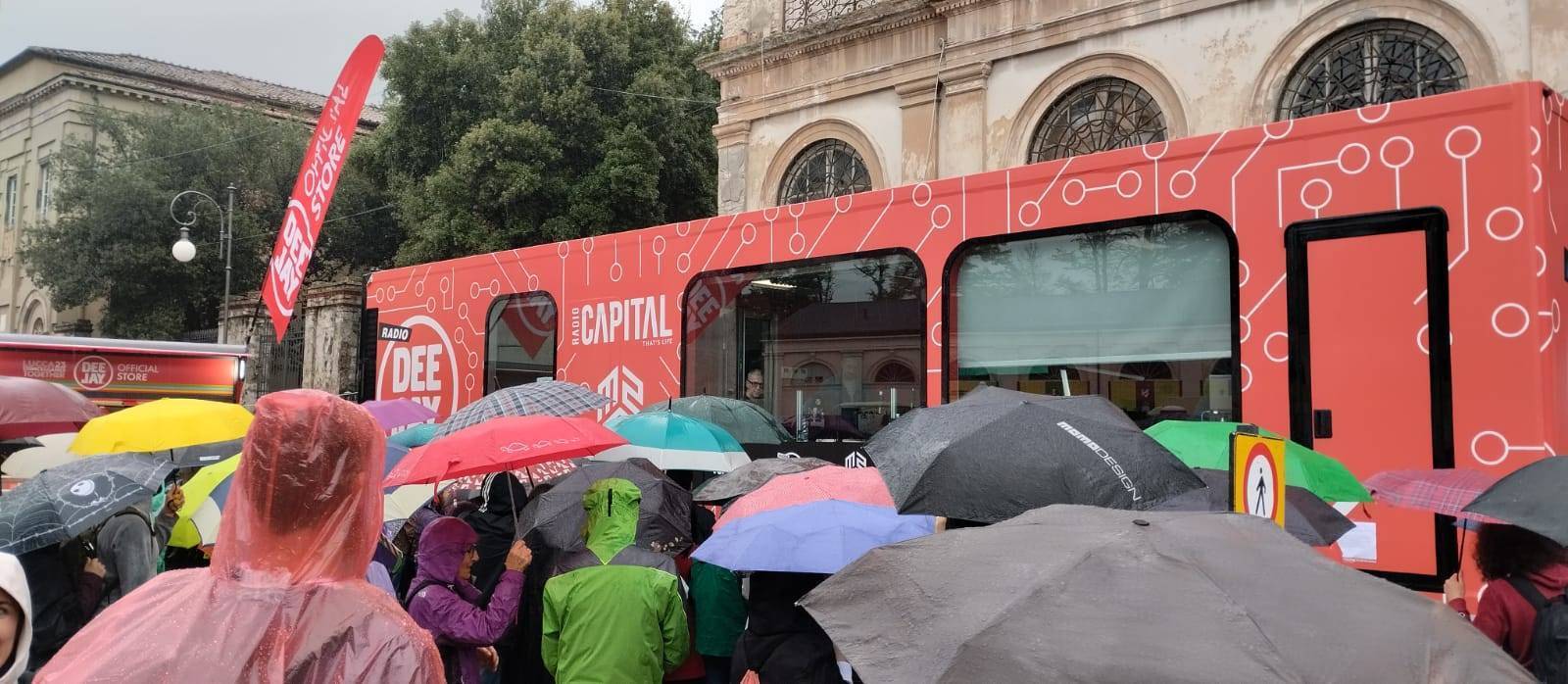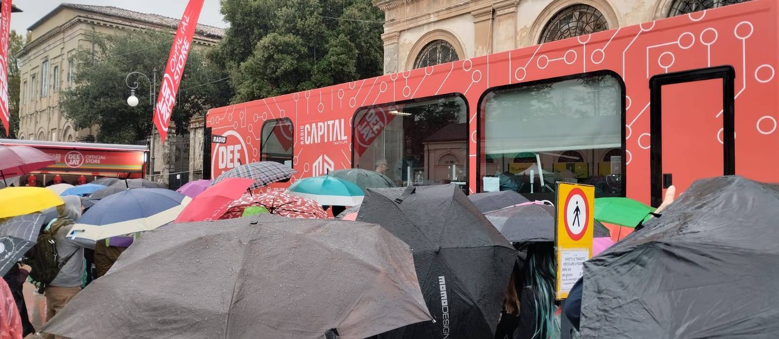 Sotto una pioggia incessante, che non ha però dissuaso le molte persone presenti ad assistere all’intero programma radiofonico protrattosi fino alle ore 12, il Team di radio Deejay ha dato appuntamento ai prossimi due giorni, sempre con inizio alle ore 10 in piazzale Verdi, per due imperdibili dirette. Lo studio mobile della nota emittente milanese sarà comunque presente per l’intera durata della manifestazione con altri programmi tra cui il “Summer Camp” di Nikki, Federico Russo e Francesco Quarna, “Gazzology” con Gianluca Gazzoli ed “Il Terzo incomodo”, con Francesco Lancia e Chiara Galeazzi. L’ingresso è libero e buon divertimento!