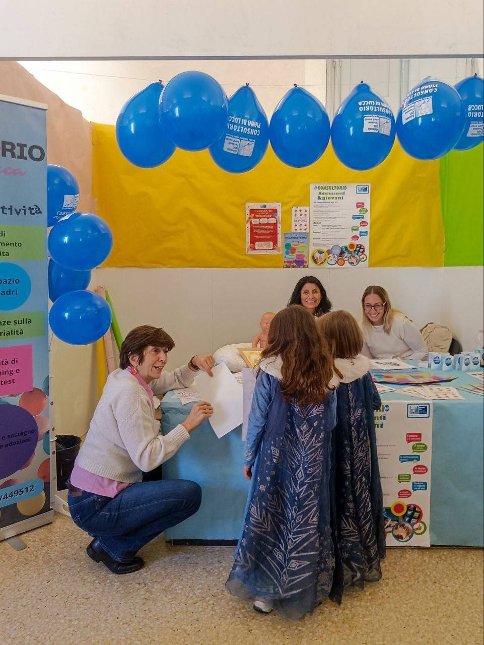 Molti i ragazzi, le ragazze, le bambine e i bambini che, anche con i loro genitori, hanno visitato lo stand del Consultorio, in cui erano esposti o volantini con le attività.