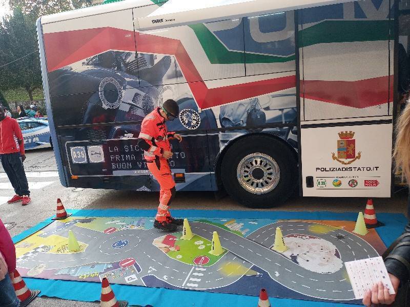 "Per i più giovani, l'educazione volge all'attenzione verso gli autoveicoli quando si attraversa la strada, ma anche alla guida personale in bicicletta, in motorino e non per ultimo, in monopattino". Un piccolo percorso stradale da fare a piedi, viene svolto con degli occhiali particolari che simulano la visuale ridotta e confusa in stato di ebbrezza.