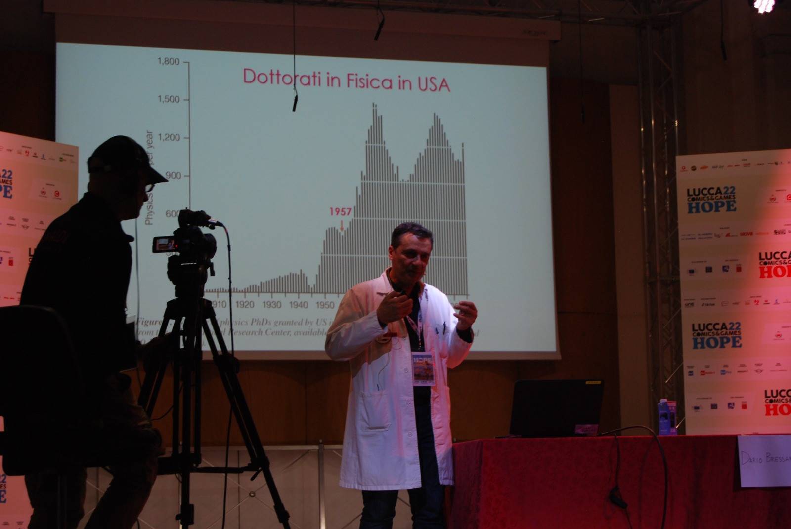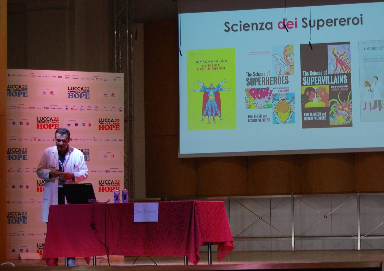 Nella conferenza tenutasi oggi alle 17 all'interno dell'Auditorium del Suffragio vicino a Piazza Bernardini, in pieno stile Lucca Comics&Games il noto divulgatore, come suo solito, ha unito il regno delle scienze con quello dei fumetti, dedicandosi in particolare agli albi della Golden e della Silver Age americana.