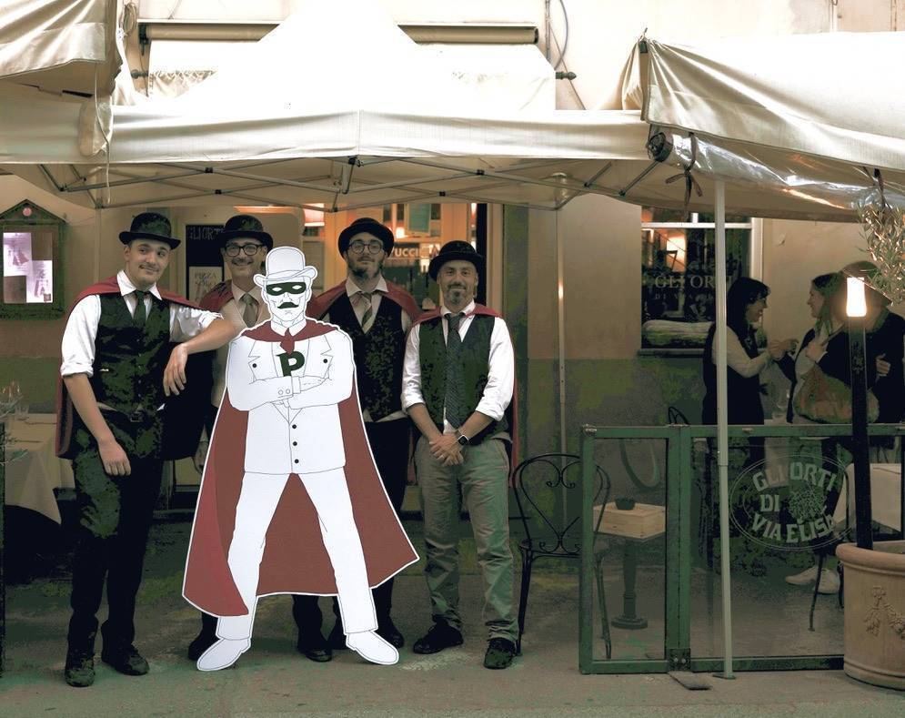 “Acrlico, pennello, pennarelli e colla”, ci dice Samuele, “come quando andavo a scuola. Ecco il sapore dell’allestimento di quest’anno, un ritorno al passato, alla nostra manualità, alla creatività che anche Antoni ci ha aiutato a riscoprire”. Solo alcuni elementi grafici sono stati elaborati da Domenico Raimondi, come la sagoma del SuperPuccini a grandezza naturale e la riproduzione delle immagini che richiamano la mostra lucchese delle saracinesche dal titolo “Le donne di Puccini, le sentinelle di Lucca”, tutto il resto è Gli Orti, il suo staff con tutta la loro voglia di esserci e partecipare.