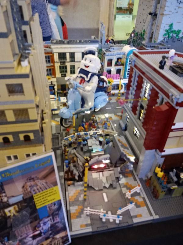 La fantasia dei costruttori ha sfoggiato la realizzazione dell'epica "Hill Valley" del film di "Ritorno al Futuro", la comparsa distruttiva dell'omino Michelin del film "GhostBusters", e scene di film di Bud Spencer e Terence Hill tanto per fare alcuni pochi esempi. Impressionante, e naturalmente meravigliosa, la città dei supereroi, come fantastiche altre scene di 'Star Wars" e scenari spaziali immaginari. Oltre alle splendide miniature, figurano anche maschere in scala 1:1, caschi, spade, pistole e scudi, realizzate sempre con i mitici mattoncini. "Una mostra sorprendente, che evidenzia l'infinitá di opere che si possono realizzare con i Lego" - riferiscono gli appassionati visitatori. E nel settore adiacente, intere ceste con migliaia e migliaia di pezzi con i quali i bambini possono creare costruzioni a piacimento in completa libertà.