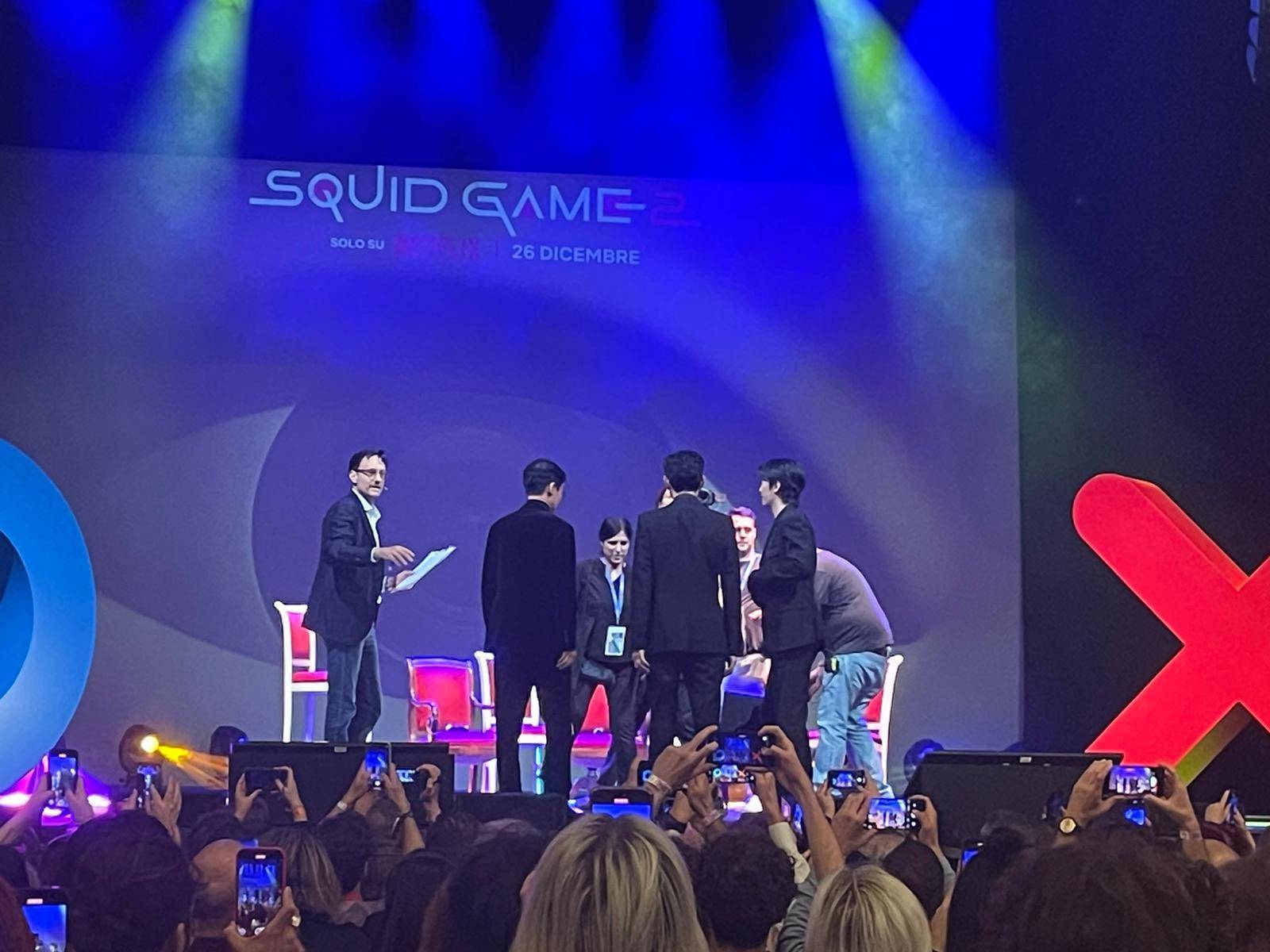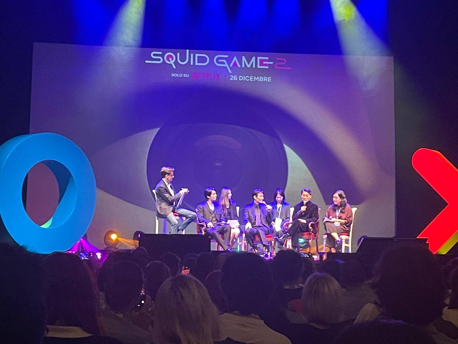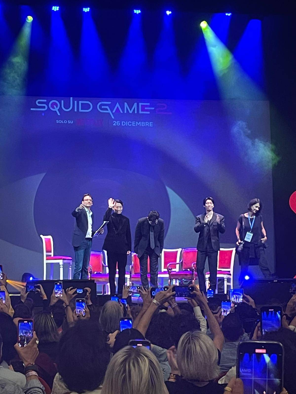 Squid Game, uno degli show più popolari di Netflix, ha recentemente festeggiato il suo straordinario successo alla conferenza stampa tenutasi oggi al Teatro del Giglio parlando della nuova stagione in uscita su Netflix il 26 dicembre e ringraziando i fan per il supporto che ha trasformato la serie in un fenomeno globale. Il presentatore ha ringraziato calorosamente tutti per il supporto, annunciando un regalo meraviglioso per il pubblico che ha seguito con passione le disavventure di questo dramma distopico, visto che dopo la conferenza stampa gli attori si sono fatti trovare in Piazza San Michele per un incontro con i fan.