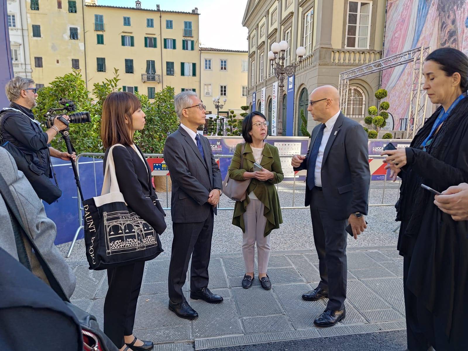 Quest’edizione può vantare il patrocinio non solo del consiglio dei ministri, ma persino dell’ambasciata giapponese: “Il Lucca Comics & Games ha contribuito significativamente alla comprensione comune e ai rapporti amichevoli tra Giappone e Italia- ha infatti osservato l’ambasciatore giapponese Satoshi Suzuki- Faccio i miei complimenti agli organizzatori per il loro lavoro instancabile, e a tutti i partecipanti per il loro amore della cultura giapponese. Sono cresciuto con anime come Astro Boy e L’uomo tigre, e sono affascinato dal fatto che i bambini in tutto il mondo ancora oggi crescano con anime e manga giapponesi come One Piece, Naruto e Demon Slayer: i titoli sono differenti, ma i temi sono gli stessi, come giustizia, famiglia, amore e vera amicizia. Prometto che la mia ambasceria continuerà a sostenere scambi culturali come quelli che vediamo al Lucca Comics”.
