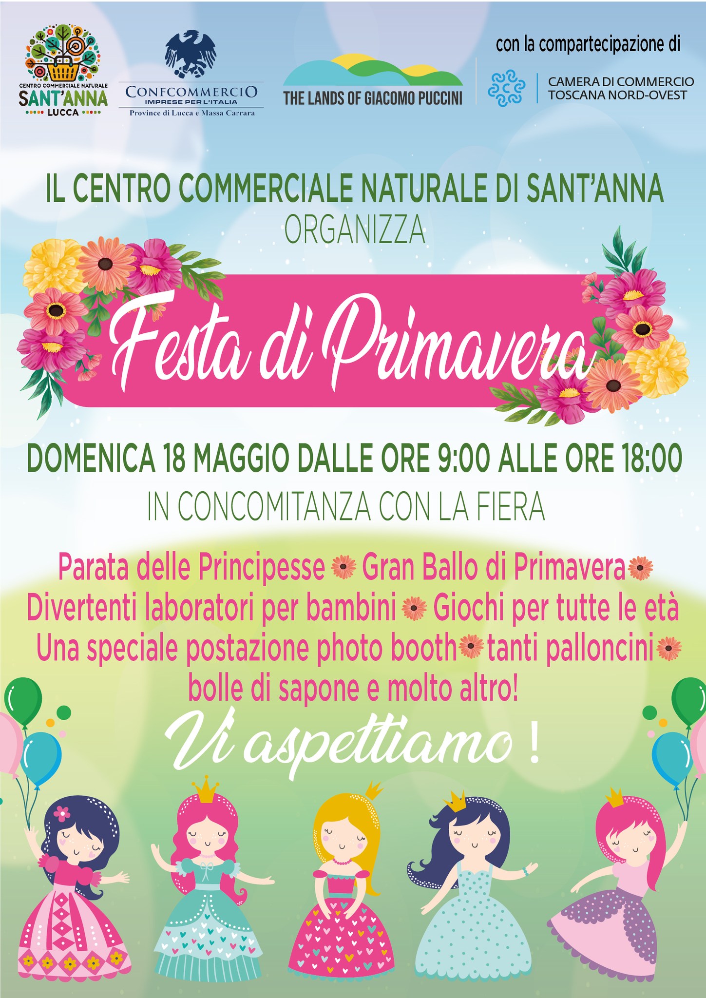 A rendere ancora più interessante la giornata ci sarà la concomitante Festa di Primavera organizzata dal Centro commerciale di Sant'Anna. Grazie alla sinergia fra Ccn e associazioni sono in programma numerose iniziative di animazione, in collaborazione con Ke Incanto Events Planning. Fra queste, la grande parata delle principesse a tema Disney, il gran ballo di primavera, laboratori e giochi per bambini, punto foto a tema, palloncini, bolle di sapone e tanto altro. Il Ccn ringrazia la Camera di Commercio della Toscana Nord Ovest per la compartecipazione. Confcommercio sottolinea come la manifestazione sarà accompagnata dalla apertura per tutta la giornata dei negozi del quartiere, con ampia possibilità di parcheggio per il pubblico nelle vicinanze.