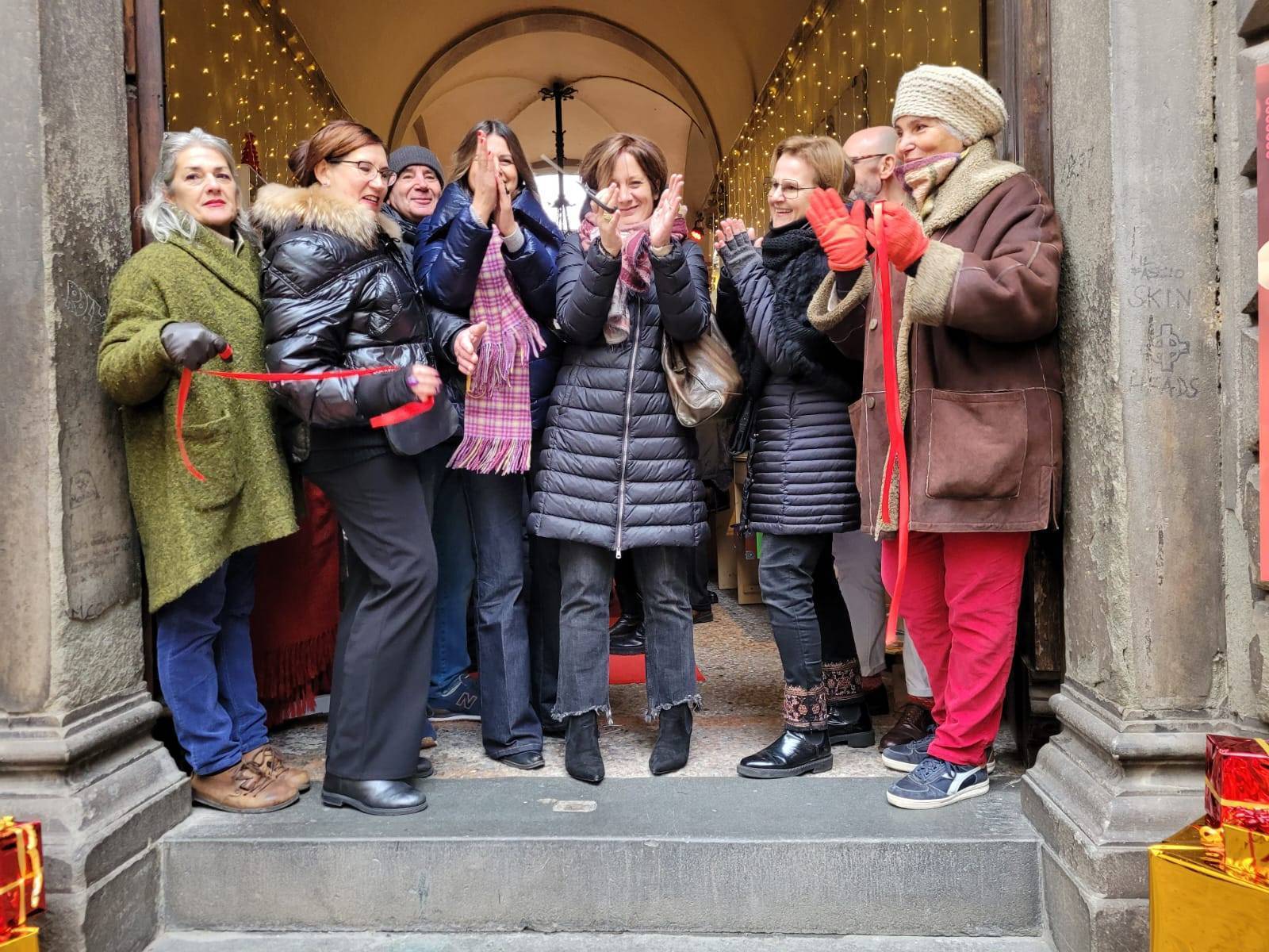 La qualità e unicità dei prodotti è accompagnata ed esaltata dall’atmosfera perfettamente serena e natalizia del mercatino, complice tra le altre cose l’albero, interamente di riciclo, che svetta nel cortile. “Siamo felici di ospitare questo gruppo di artisti fenomenale- ha affermato Sara Giovannini, direttrice di Confcommercio, che ha la sua sede proprio in palazzo Sani- Per noi è un onore averlo qui per la prima volta in prossimità di una ricorrenza così bella e gioiosa”.