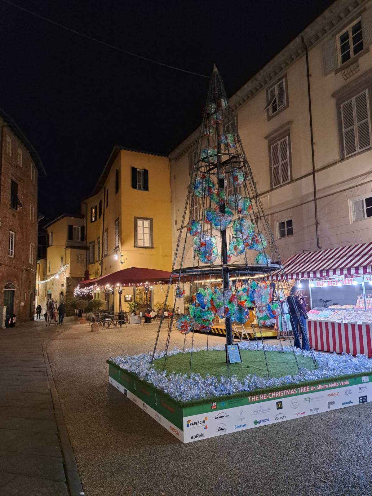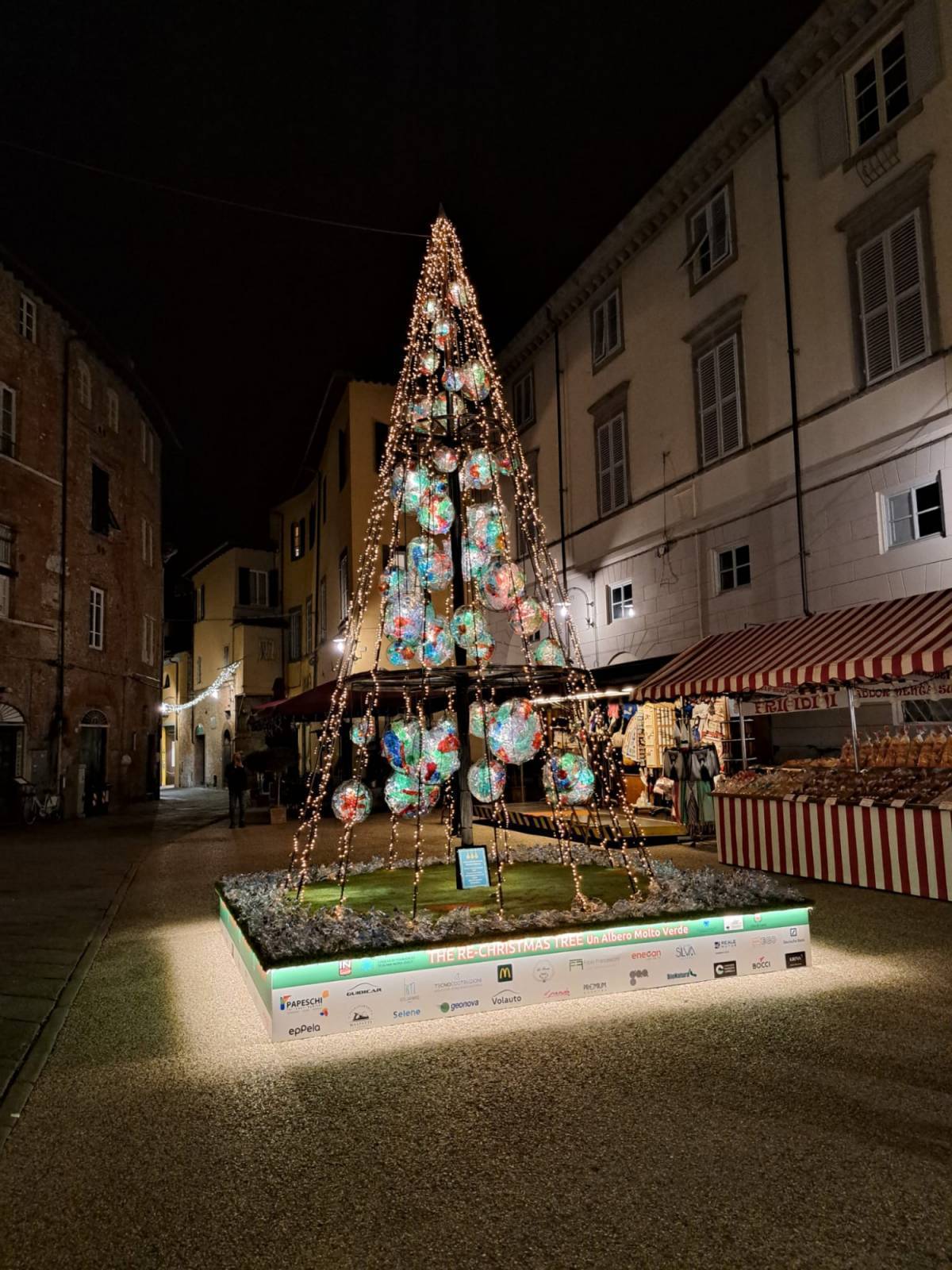 Il Natale è da sempre la festa della nascita di Gesù bambino, della gioia, della famiglia ma purtroppo anche dello spreco. Durante il periodo natalizio ogni singola persona, per un motivo o per un altro, aumenta notevolmente la sua impronta ambientale. Questo è dovuto al consistente consumo di energia utilizzata per tenersi al caldo vista la stagione invernale, per la preparazione dei maestosi cenoni attorno ai quali si riunisce la famiglia, e per le luci colorate e luminarie utilizzate come decorazioni natalizie. Durante la giornata del 2 dicembre la città di Lucca si è resa però protagonista di un’interessante iniziativa ideata dal Centro Commerciale Città di Lucca di Confcommercio e sostenuta da numerosissimi sponsor che hanno abbracciato il progetto: si tratta di un albero di Natale posizionato al centro di piazza Scalpellini, dal nome “Re – Christmas Tree, un albero molto verde”. La particolarità di quest’albero ha proprio a che vedere con il suo consumo energetico. L’installazione, infatti, allestita con grandi palle luminose contenenti al loro interno bottiglie di plastica colorate, ha un impatto ambientale decisamente contenuto grazie alla tecnologia LED dalla quale è costituito. Il suo consumo totale, infatti, si aggira intorno ai 270W, lo stesso che avrebbero tre vecchie lampadine. Si è trattato di un processo molto laborioso che ha coinvolto anche i cittadini nella sua realizzazione, in quanto sempre con l’obbiettivo di maggiore sensibilizzazione sull’argomento, nei giorni precedenti era stato esposto nel cortile di Palazzo Sani un contenitore nel quale chiunque poteva lasciare le proprie bottiglie di plastica. Si tratta quindi di una decorazione natalizia che, oltre a contribuire all’arricchimento estetico della città, si propone come simbolo di un futuro sostenibile e radioso, che ha soltanto bisogno di qualche spintarella e che si pone di fronte a noi come un ostacolo, certo, ma non più così insormontabile come lo era magari un tempo. Un faro ecologico che speriamo non passi inosservato in una luminosa notte di Natale.